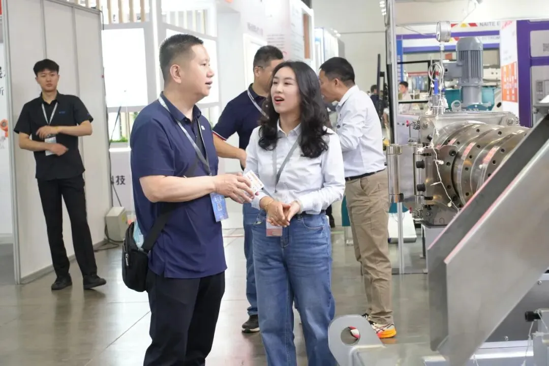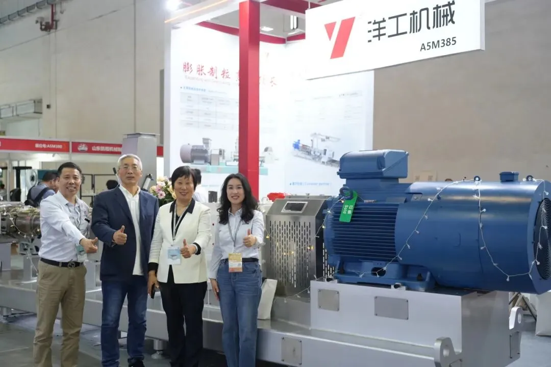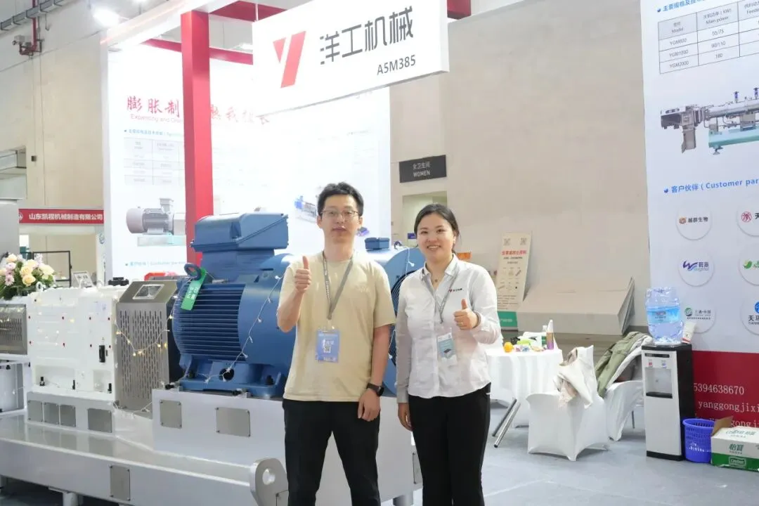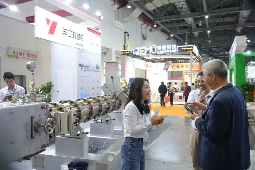 展会期间,洋工机械特装展位人头攒动,我司重点展示了最新款双螺杆膨化机,凭借突出的性能参数与精密的制造工艺,吸引了众多专业人士驻足咨询。