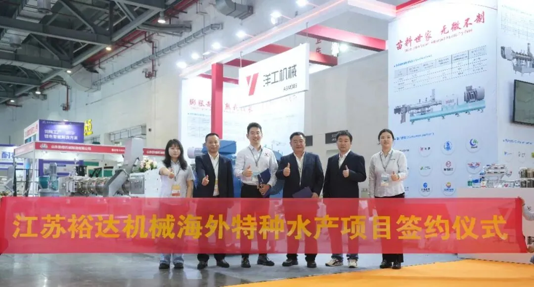 洋工机械与江苏裕达机械有限公司举行战略合作签约仪式,双方就海外特种水产饲料膨化项目达成深度合作。