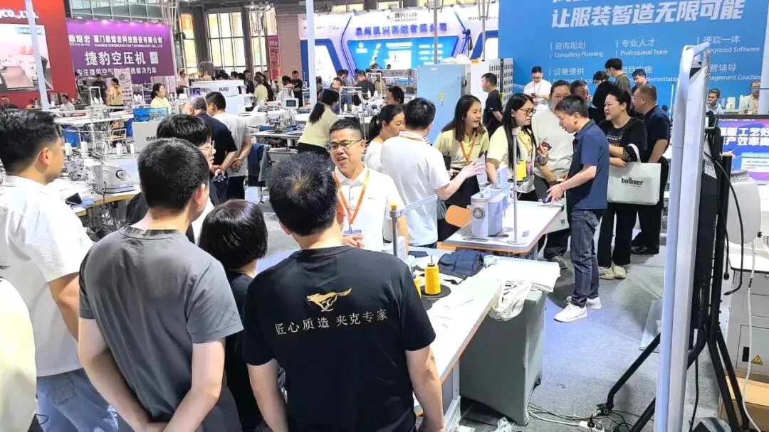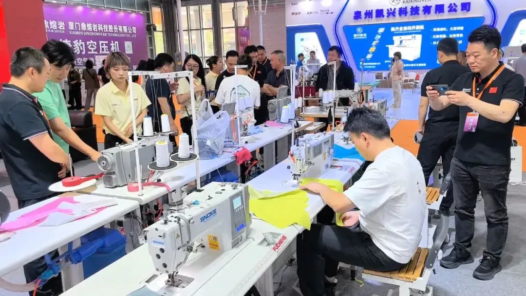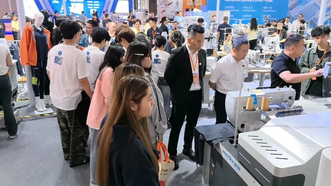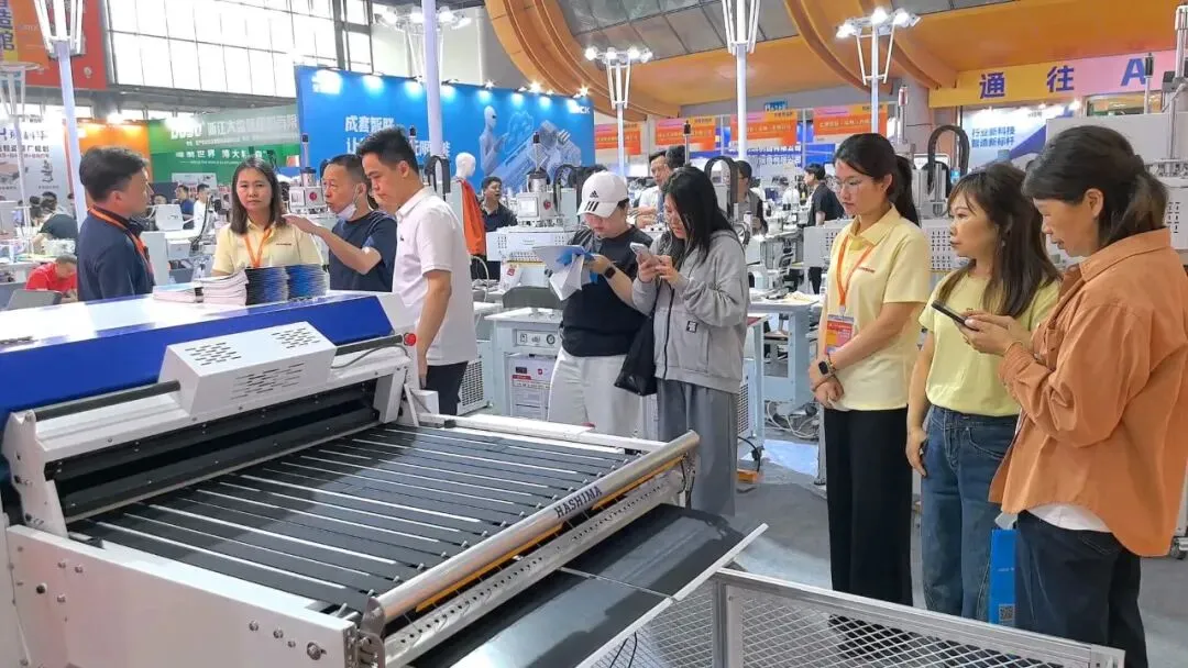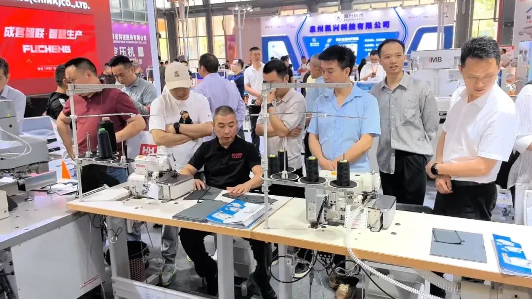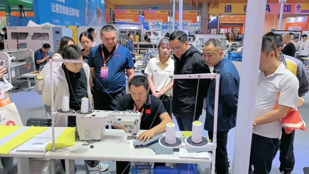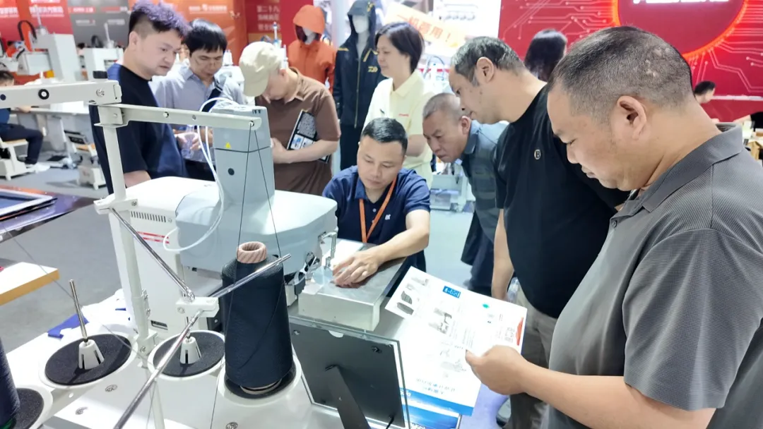 不少观展来宾刚走近展位,就被流畅运转的智能设备所吸引,纷纷放慢脚步驻足观看。有人俯身细看无缝贴合工艺,有人围着四针六线设备轻声交流,还有人拿出手机拍摄记录,不少原本路过的观展嘉宾,也被现场热闹的氛围吸引而来,自觉排起队伍等候咨询。