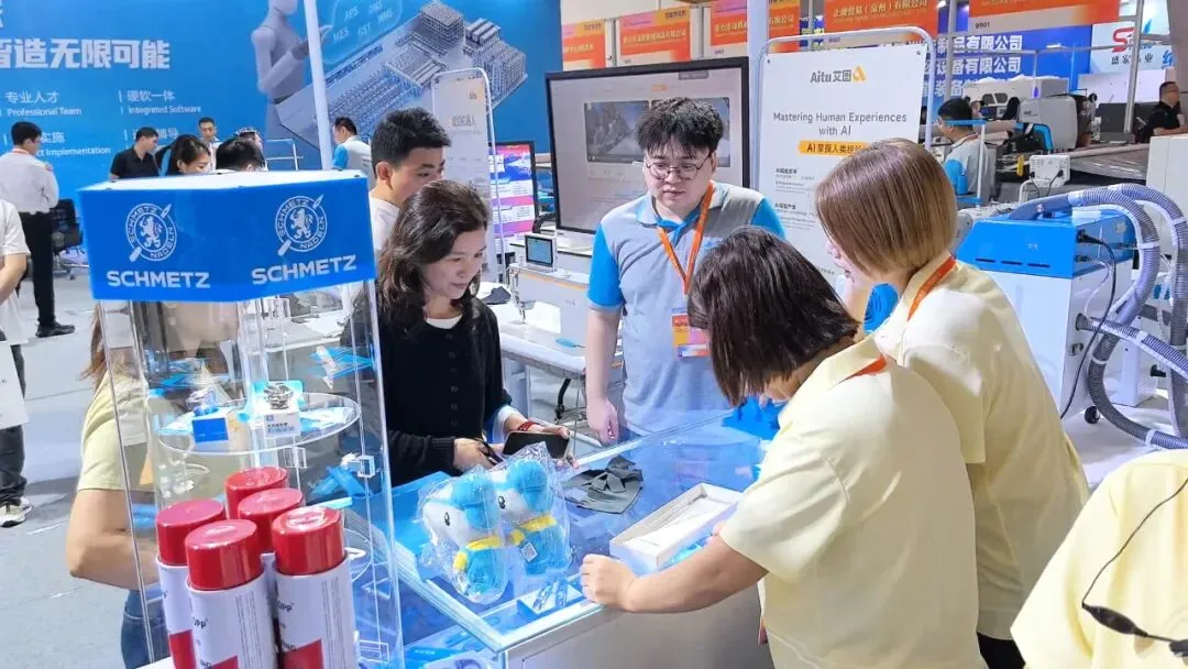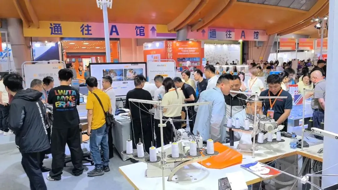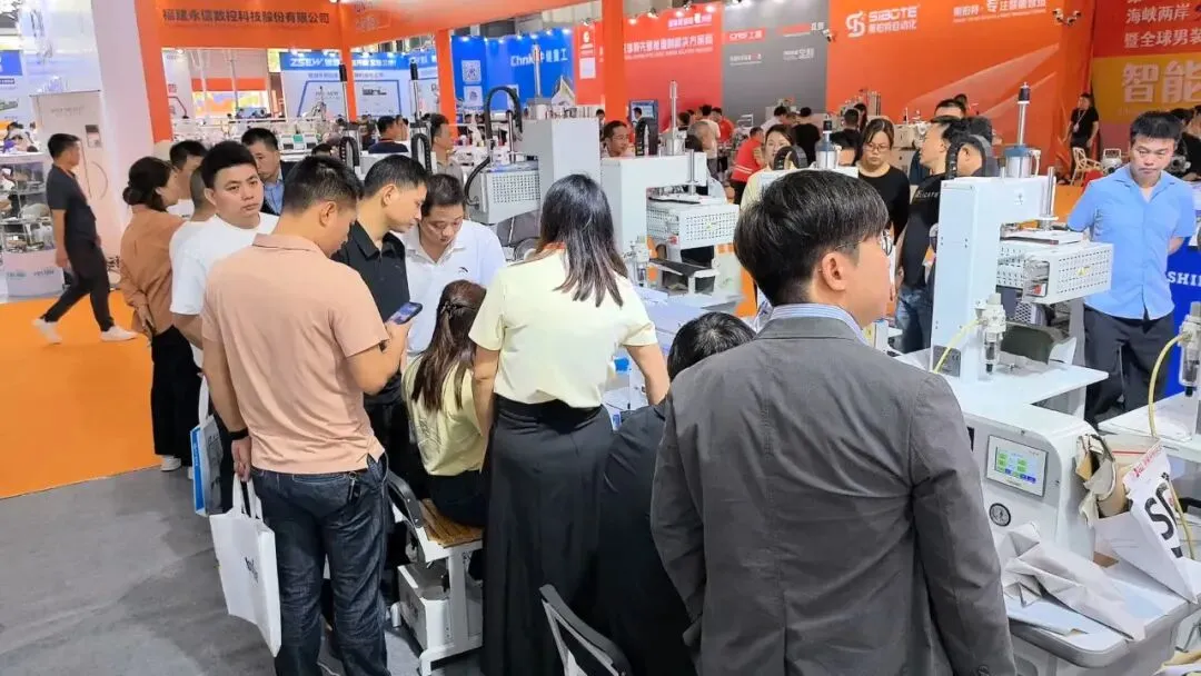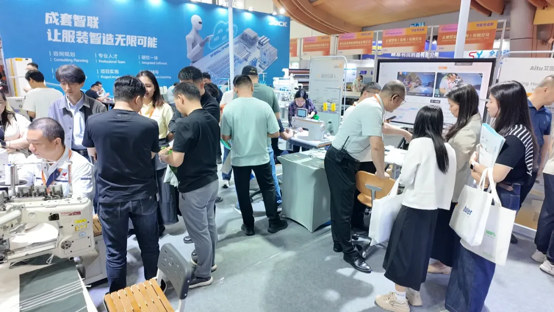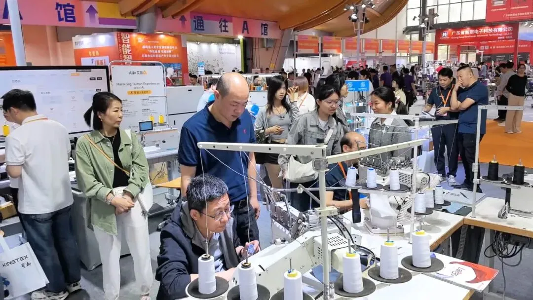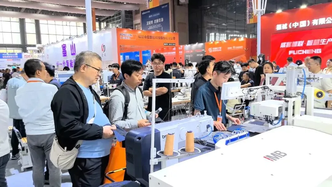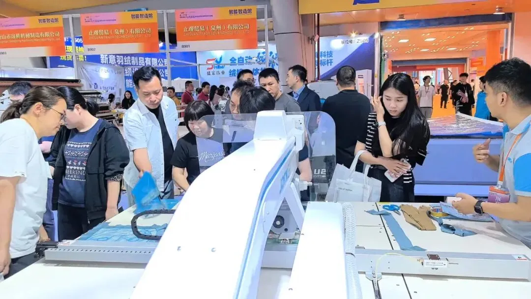 不少观展来宾刚走近展位,就被流畅运转的智能设备所吸引,纷纷放慢脚步驻足观看。有人俯身细看无缝贴合工艺,有人围着四针六线设备轻声交流,还有人拿出手机拍摄记录,不少原本路过的观展嘉宾,也被现场热闹的氛围吸引而来,自觉排起队伍等候咨询。