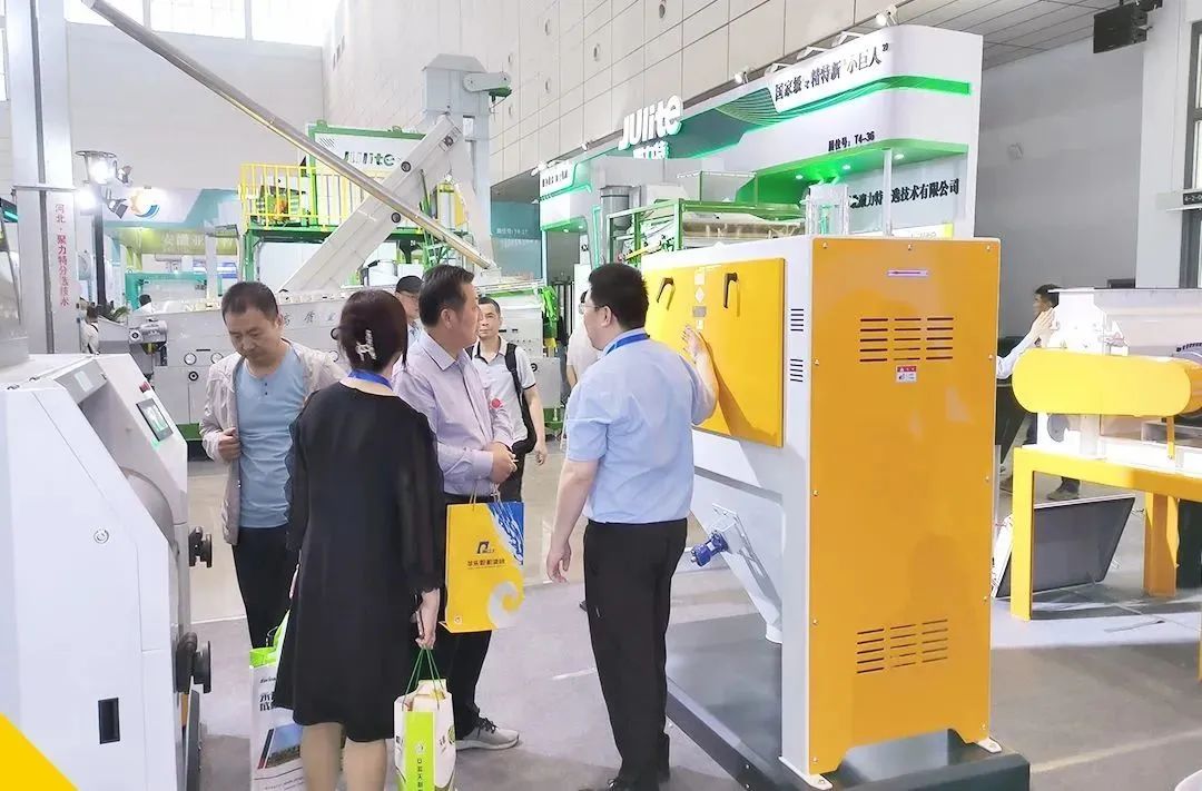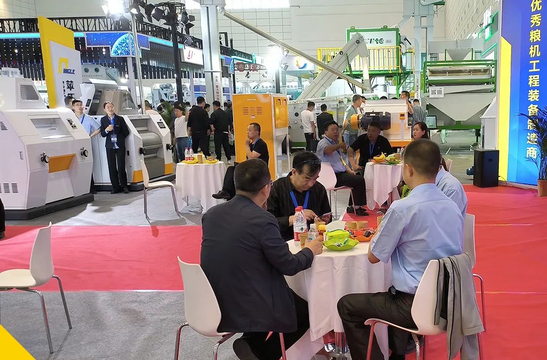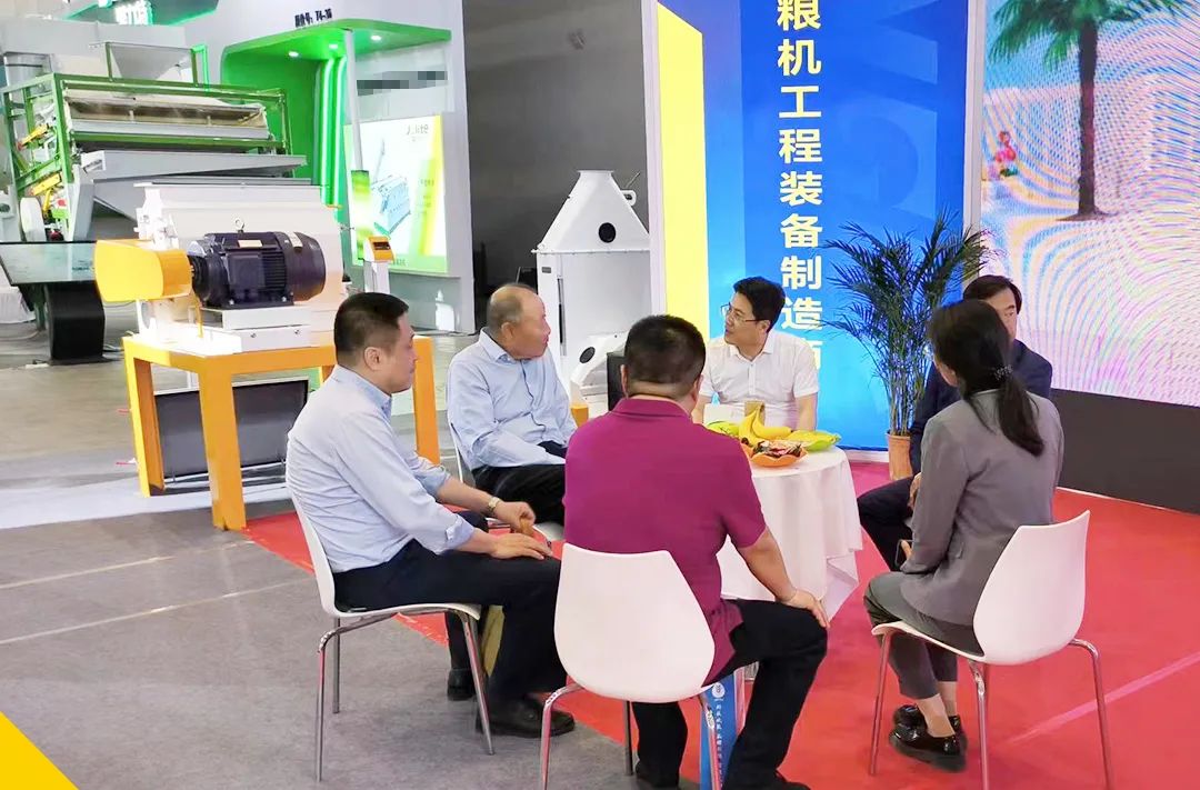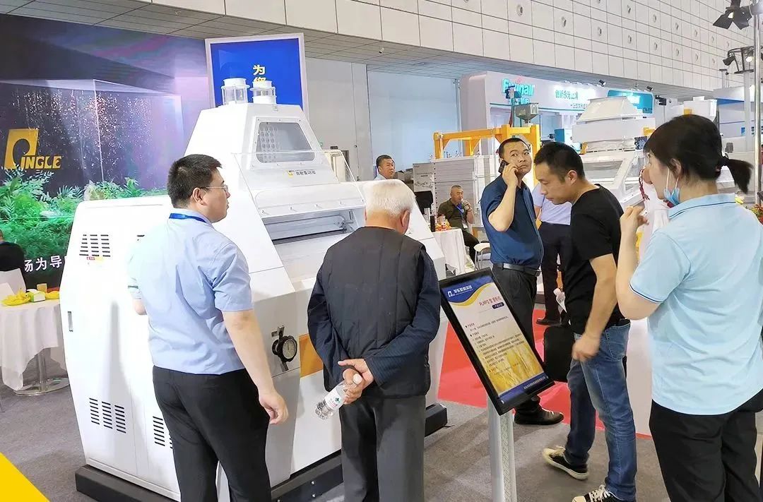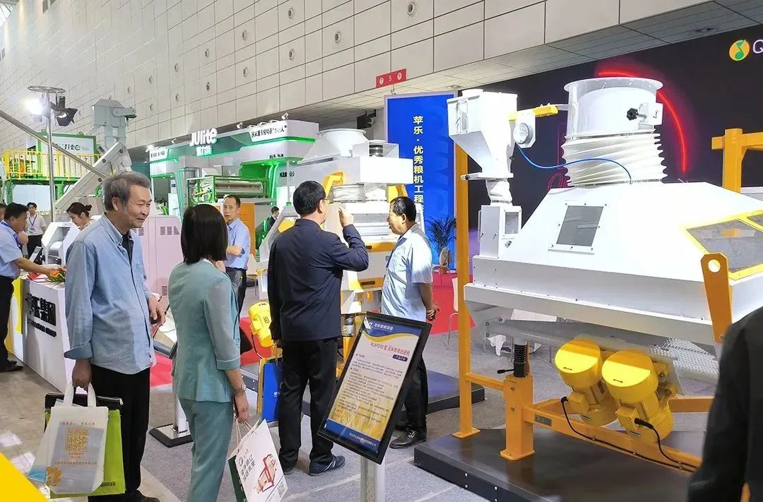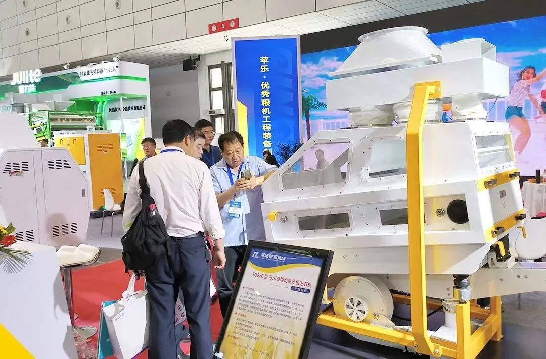 在粮机装备展区,苹乐产品以高智能化、高品质外观吸引了众多的客户前来咨询洽谈,成为了本届展会的亮点。