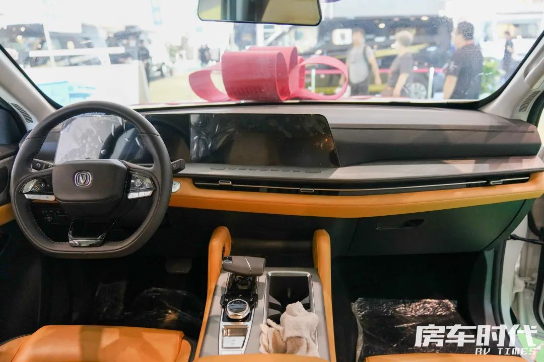 驾驶席座椅采用橙色加黑色设计,赋予商务奢华质感。该车还采用了一体式12.3英寸超大双联大屏,带来更好的视觉感受,并支持多项功能操作,为车友使用带来便利。除此之外,驾驶室还装置有其他豪华配置,例如电动六向调节座椅、多功能方向盘、无钥匙进入和一键启动等,非常符合现代豪华车的设计风格。