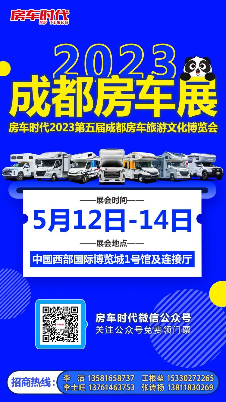 了解更多房车资讯及最强优惠,欢迎关注房车时代2023第五届成都房车旅游文化博览会,5月12-14日,我们在中国西部国际博览城1号馆及连接厅与您相约,报名已经开始,千万不要错过~快来扫码领取免费门票!