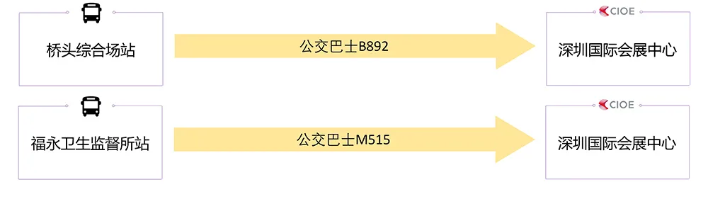 香港国际机场:搭乘公共交通,如跨境巴士、轮渡等抵达深圳后,再转乘公共交通至展馆