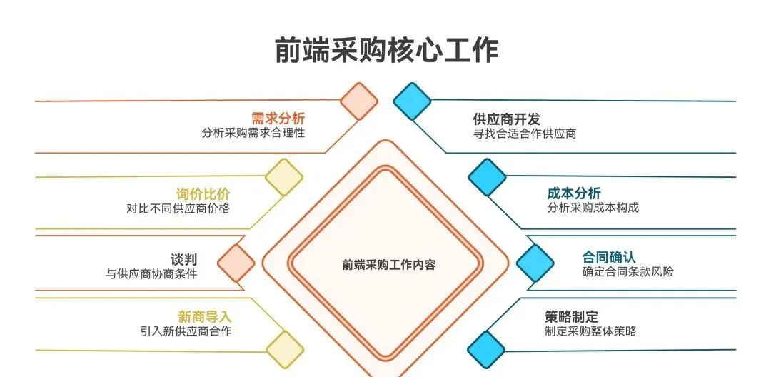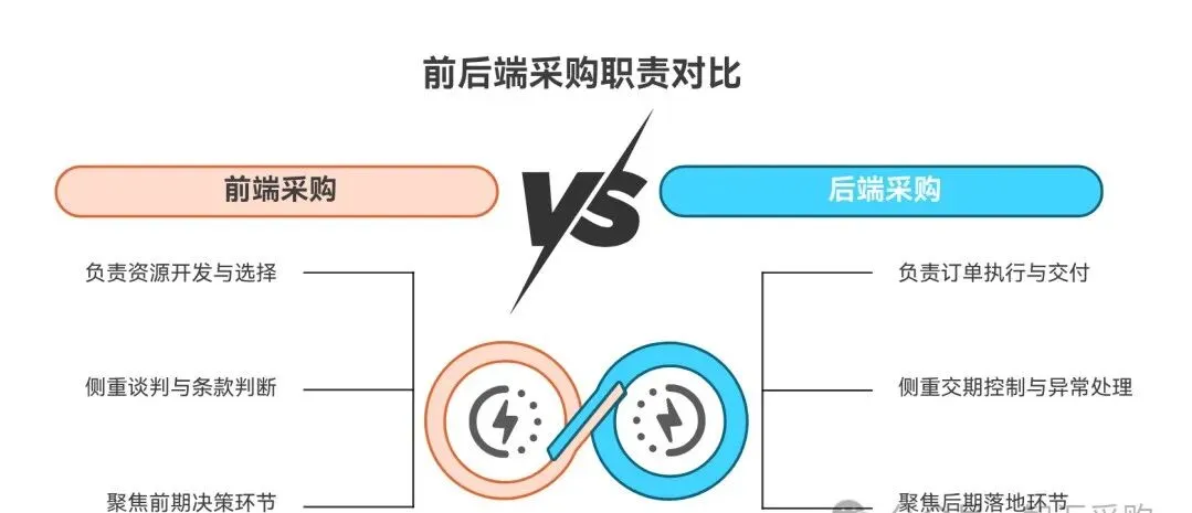 很多刚入行的朋友,一听“前端采购”“后端采购”,第一反应都是:因为在很多小公司里,采购岗位本来就是一个人从头做到尾:接需求、找供应商、比价、谈判、下单、催货、验收、对账,基本都要自己来。但只要企业规模一上来,采购量一大,品类一多,供应商一复杂, 你就会发现: 一个人很难说白了,企业之所以会区分前端采购和后端采购,核心就三个原因:采购不是“找到供应商就结束”,后面还有订单执行、交付跟进、异常处理、对账结算。前面偏“选择”,后面偏“落地”,事情本来就不是一类事。前端采购更偏资源开发、价格谈判、条款判断、供应商选择;后端采购更偏订单推进、交期控制、异常闭环、流程执行。如果让同一个人既管前面开发谈判,又天天盯后面下单催货,所以企业把采购拆成前端和后端,本质上不是为了把岗位叫得更复杂,也正因为这样,采购岗位里才慢慢有了前端采购和后端采购的区分。很多刚入行的人,一听“前端采购”“后端采购”,会觉得像互联网分工。前端采购,核心是“决定买谁、怎么买”; 后端采购,核心是“确保买得回来、交得上、对得齐”。前端更偏 资源开发、供应商选择、价格和条款谈判 。 后端更偏 订单执行、交付跟进、异常处理、对账结算 。需求分析、供应商开发、询价比价、成本分析、谈判、合同条款确认、新供应商导入、采购策略制定 这东西该不该买?应该找谁买?这个价格合理不合理?这家供应商值不值得长期合作?条款怎么谈,风险怎么控?供应商开发能力、谈判能力、成本分析能力、风险判断能力、跨部门沟通能力、合同意识今日份-采购干货免费分享
