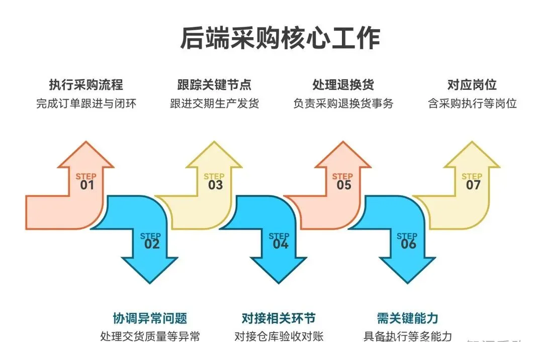 下采购订单、跟催交期、跟进生产与发货、协调来料异常、对接仓库验收、跟进对账付款、处理退换货、做采购台账和流程闭环订单发出去没有?供应商什么时候交?延误了怎么处理?到货数量和质量对不对?这笔款什么时候能付?异常怎么闭环?执行力、节点跟踪能力、异常处理能力、沟通协调能力、细节管理能力、留痕与流程意识真正的区别,不在谁高级, 而在于你解决的是哪一段问题。交付延误、来料异常没人盯、对账付款混乱、事情一直在补锅前端采购决定“选得对不对”; 后端采购决定“落得稳不稳”。你看,前端不是不用管交付,后端也不是完全不懂供应商。 只是 主责不同 。如果你想长期往更高价值的采购岗位走,前端能力一定要补。 因为前端更接近:恰恰相反,很多采购人真正的基本功,都是在后端练出来的:如果你长期只停留在“下单、催货、对账”这几个动作里,成长会比较慢。先把后端执行做扎实,再尽快往前端的比价、谈判、 供应商管理 、成本分析靠。前端采购,决定采购的上限; 后端采购,决定采购的下限。