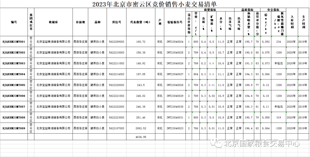 (清单)2023年北京市密云区区级储备粮竞价销售交易会