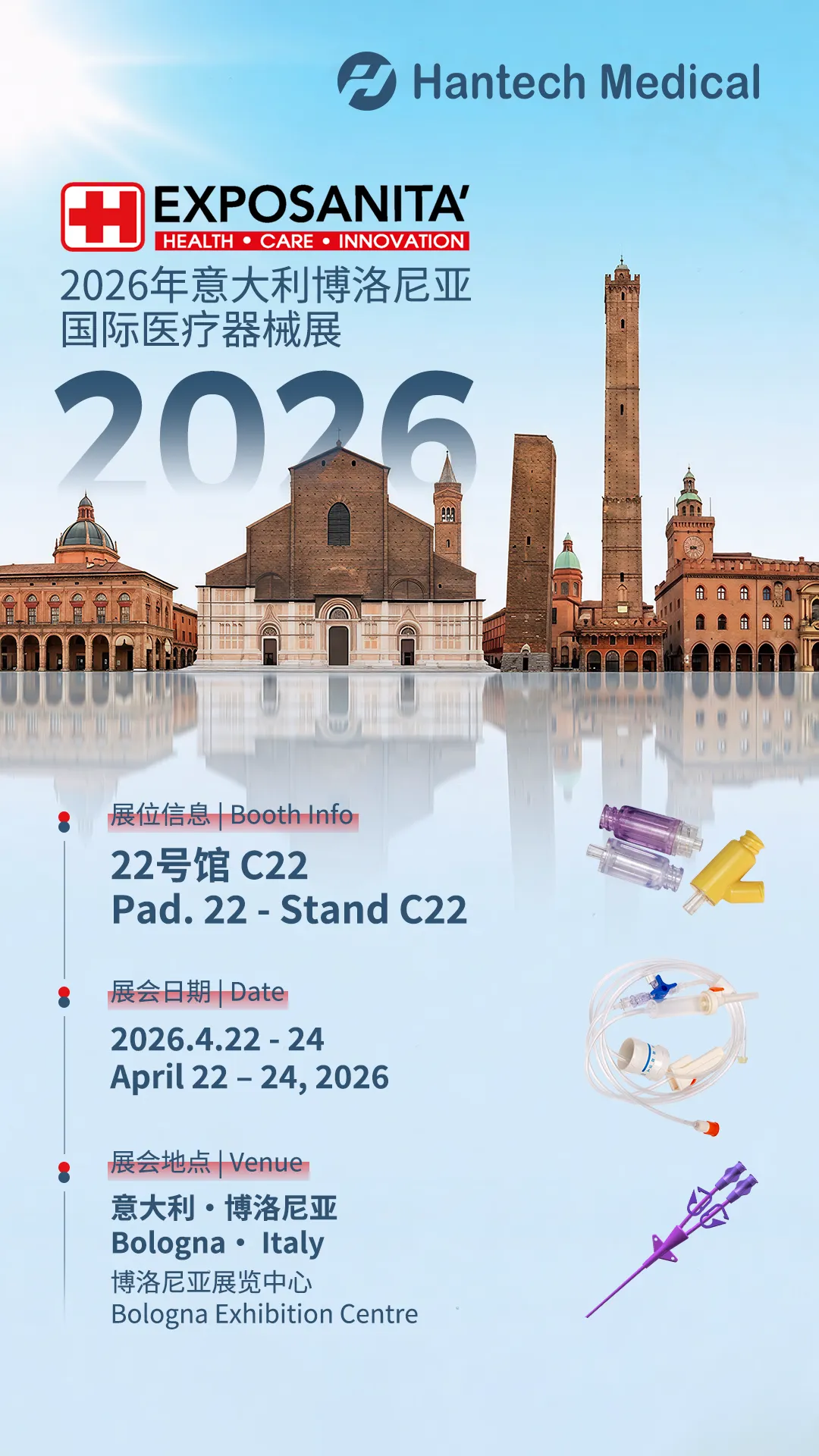 Hantech Medical Italy will exhibit at Exposanità 2026 at Bologna Exhibition Center in Bologna, Italy from April 22 to 24, 2026. See you at PAD.22, Stand C22!