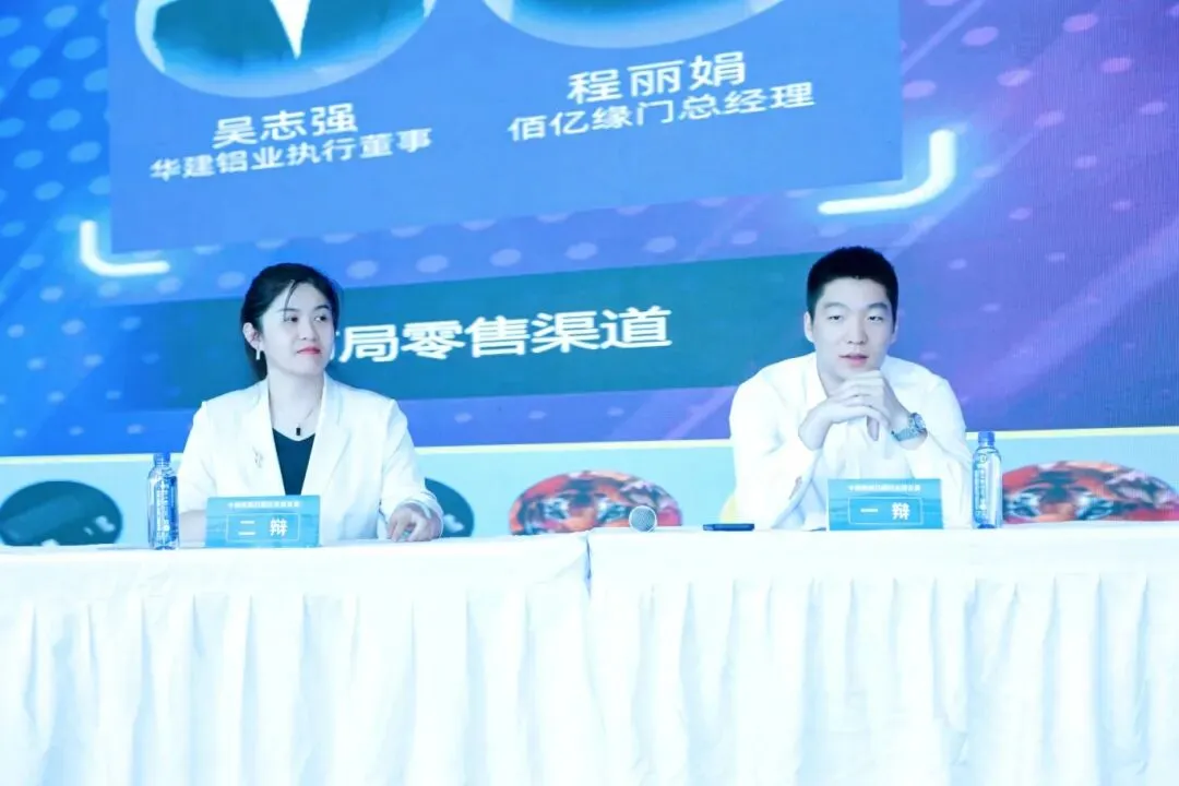 中国建筑材料流通协会系统门窗专委会主席、米兰之窗董事长马俊清,国检集团玻璃事业部总工程师、市场部部长王蕾,极景门窗CEO李小虎担任此次辩论赛评委