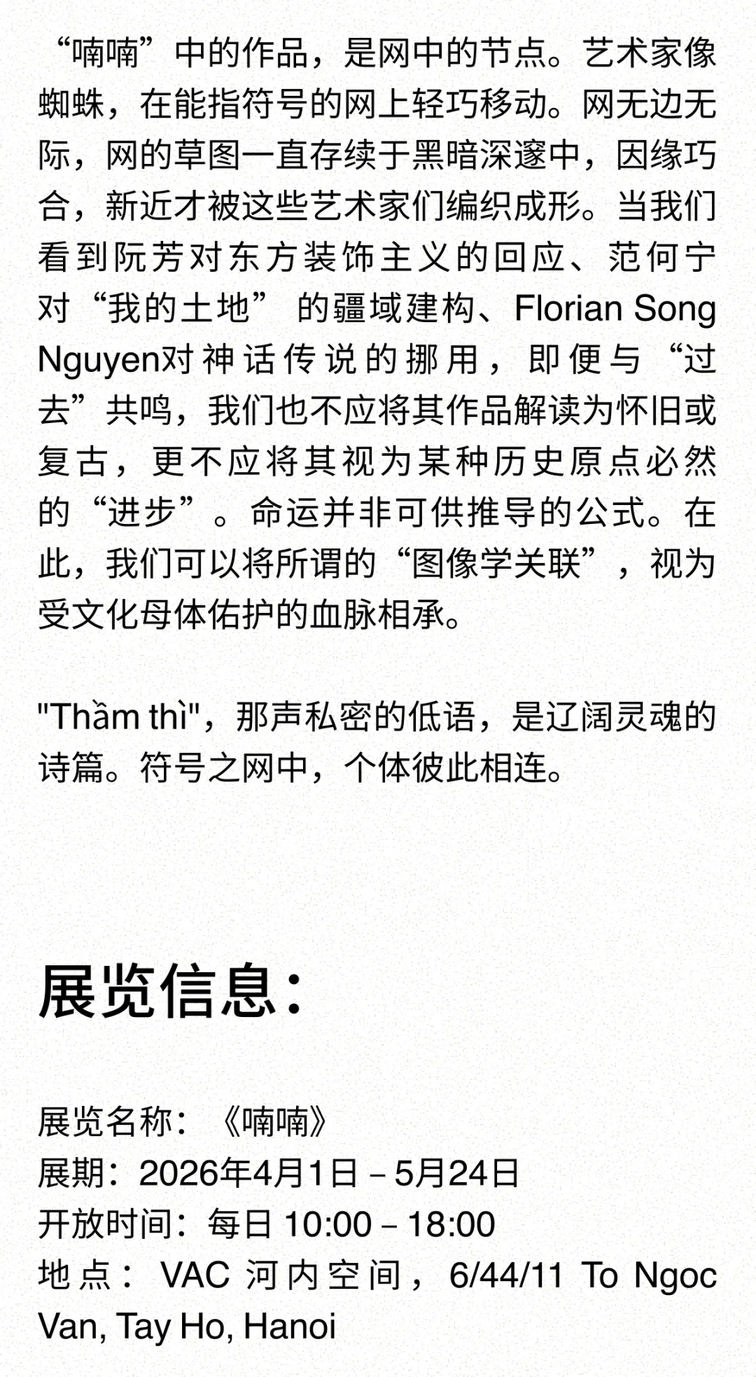VAC 三周年纪念展览《喃喃》
