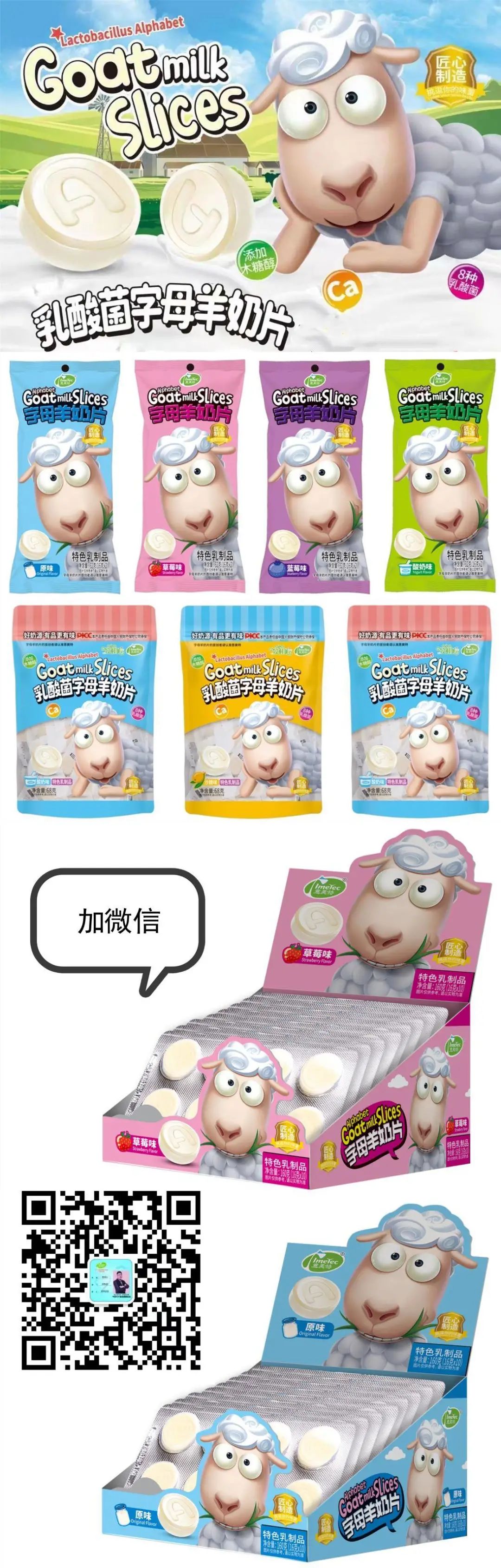 众多经销商凭此产品年赚100万!首次进货免费,意美特字母羊奶片,儿童益智类食品!8种乳酸菌,添加木糖醇,补充Ca元素!无白砂糖,无色素,无香精,健康营养品复购率超95%,动销快,利润高!无竞品,每年销量增长超100%!