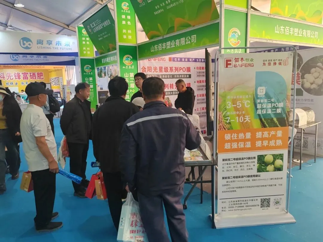 4 月 14 日至 17 日,第二届山东绿色蔬菜产业博览会暨第十四届绿色瓜菜菌博览会在聊城莘县隆重举办,山东佰丰塑业携旗下优质农膜产品精彩亮相。