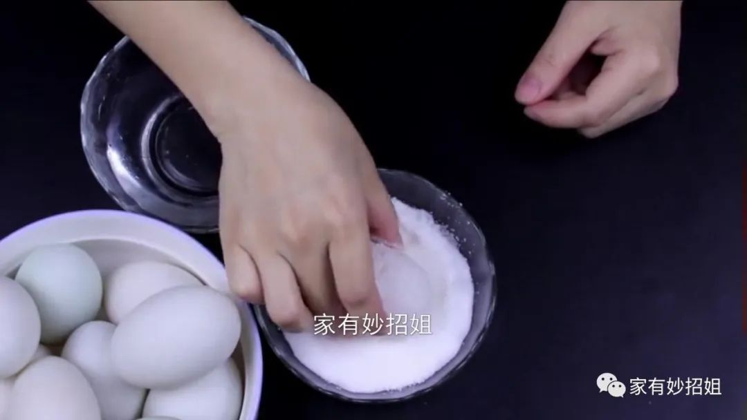 清洗鸭蛋的时候,我们可以先在抹布上倒点食盐来搓洗,因为食盐具有杀菌的作用,而且食盐的细小颗粒也能增加摩擦力,这样就可以将鸭蛋的表面清洗的更加干净了。