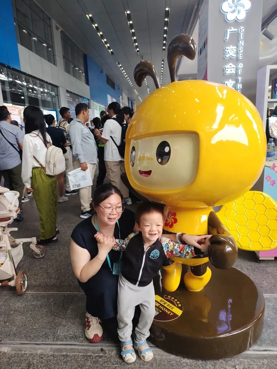 今年广交会的萌宠是“蜜蜂?”。主题、拍照、打卡点,就连“导流车”也是蜜蜂?车头哦。小家伙看到?就说,“妈妈,我们去跟蜜蜂拍照吧!”累死累活啦!