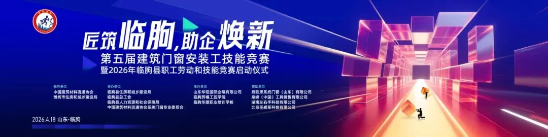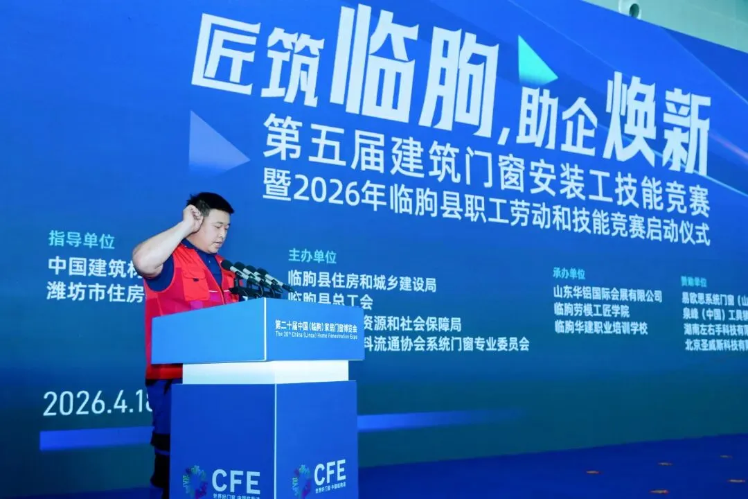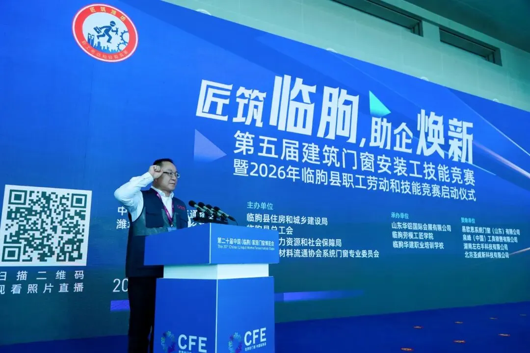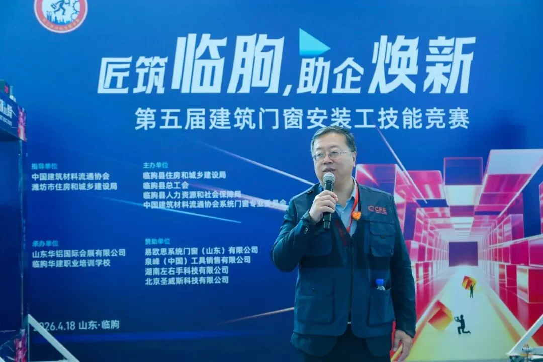 4月18日上午,“赋能助企•匠筑临朐”建筑门窗安装工技能竞赛在山东·临朐国际会展中心成功举办。本次大赛在中国建筑材料流通协会、潍坊市住房和城乡建设局的指导下,由临朐县住房和城乡建设局、临朐县总工会、临朐县人力资源和社会保障局、中国建筑材料流通协会系统门窗专业委员会主办, 山东华铝国际会展有限公司、临朐华建职业培训学校承办。同时,本次比赛得到了易欧思系统门窗(山东)有限公司、泉峰(中国)工具销售有限公司、湖南左右手科技有限公司、北京圣威斯科技有限公司的大力支持与赞助。