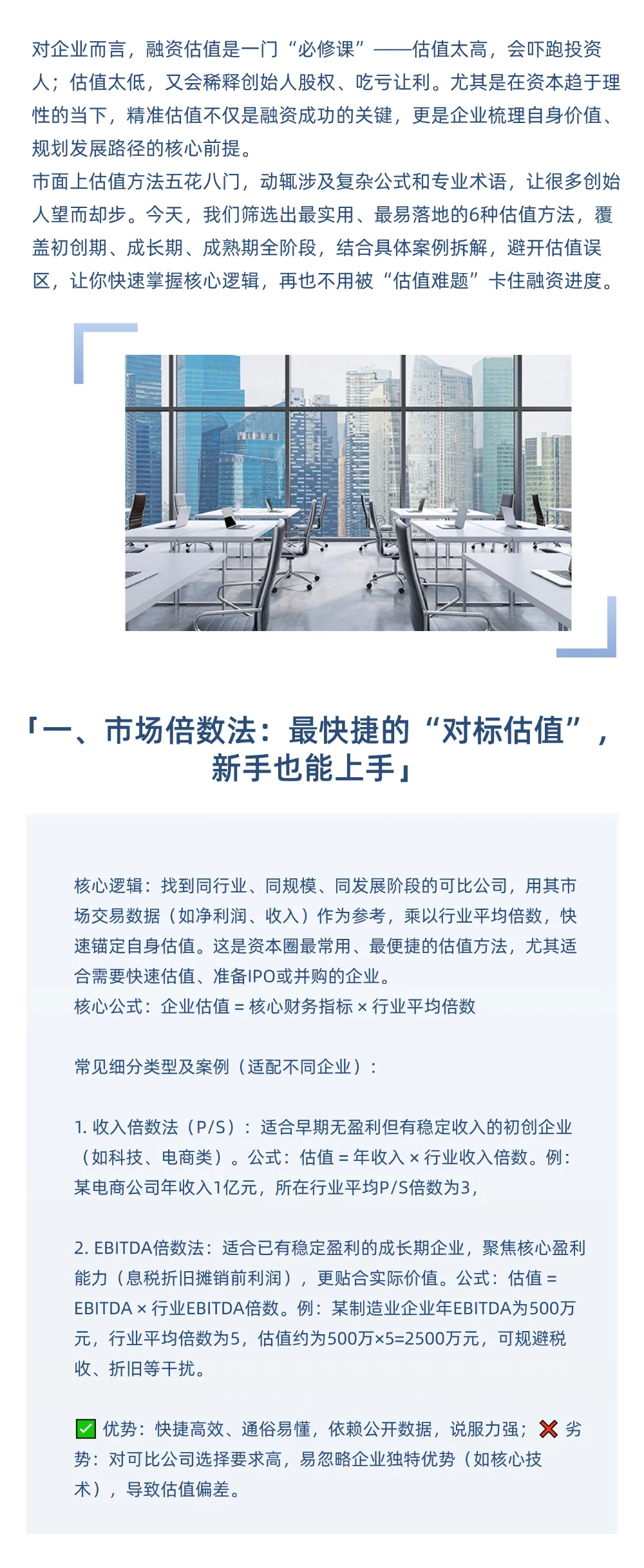 融资估值不踩坑!企业最实用的6种方法,从初创到成熟全适配