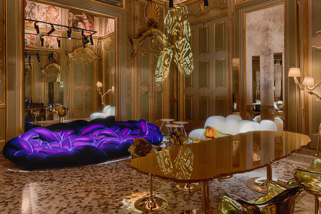 在13–15号馆A Luxury Way核心区,由Maison Numéro 20在室内设计师Oscar Lucien Ono指导下打造的装置Aurea, an Architectural Fiction《金辉幻境:建筑的叙事》,以一座虚构酒店为线索,探索现实与想象的边界。它不仅是视觉与思想地标,更是一处引人反思的现场课堂。