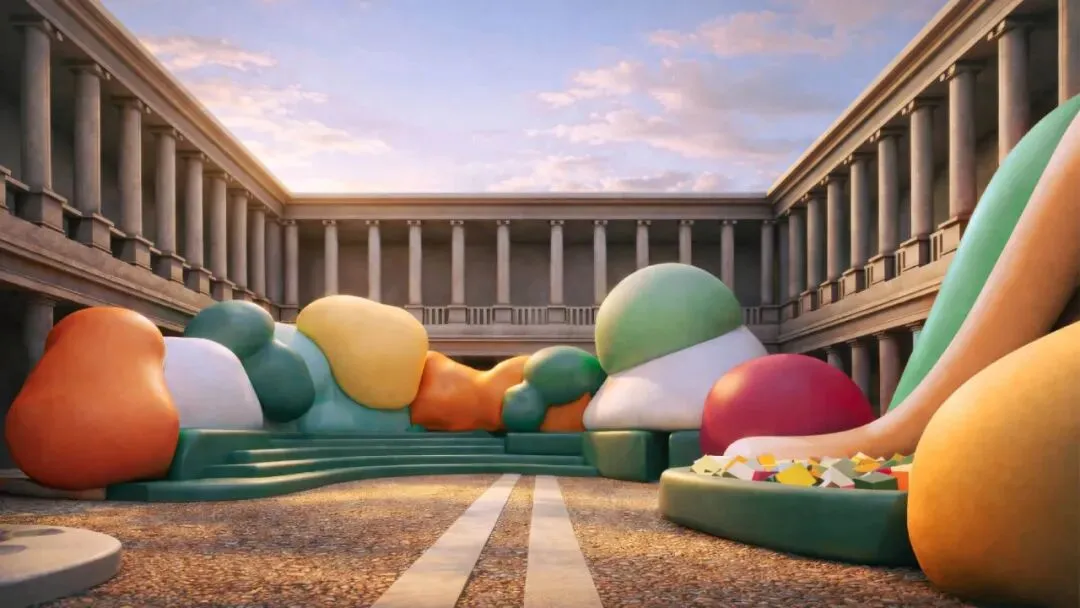 Brera美院的中庭每年都是人流中心,今年Sara Ricciardi带来了《Serotonin – The Chemistry of Happiness(血清素——幸福的化学反应)》。简单说,就是把“快乐激素”这个概念,变成了一个充满巨型充气结构的包裹感空间。走进去,心情会不自觉地跟着明亮起来。