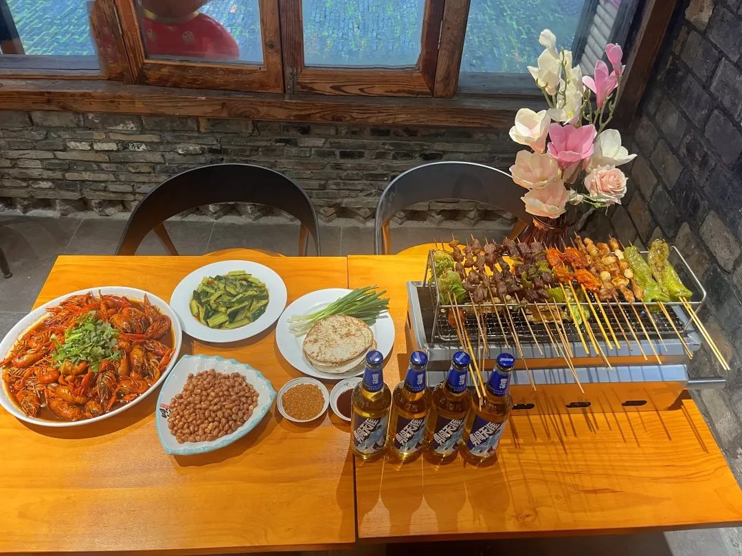 烤炉、小饼加蘸料烧烤灵魂三件套,卷上最钟爱的烤串,尝一口肉质饱满的龙虾,岂能是一个爽字了得!