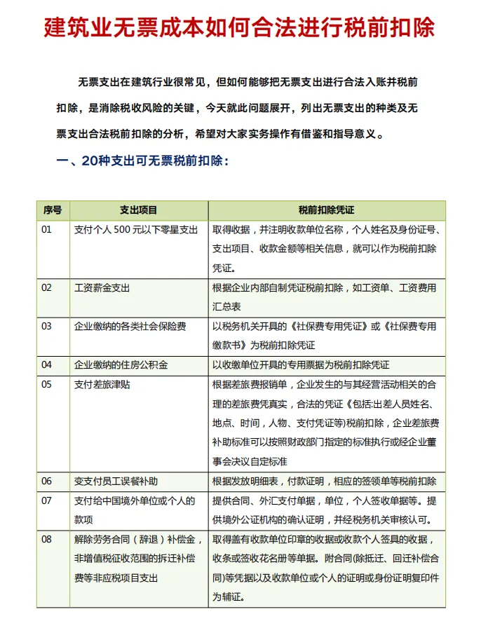 一般遇到供应商说“缺成本票”,以为只要补张发票就能平账,但对于建筑行业来说不是这么简单的事,建筑行业缺成本票是有风险点的,比如虚开发票可能就会有刑事责任,白条入账也代表所得税前不得扣除,小编这里整理了建筑业无票成本怎么合法进行税前扣除,还有缺乏成本票的应对策略,一起来看看吧!