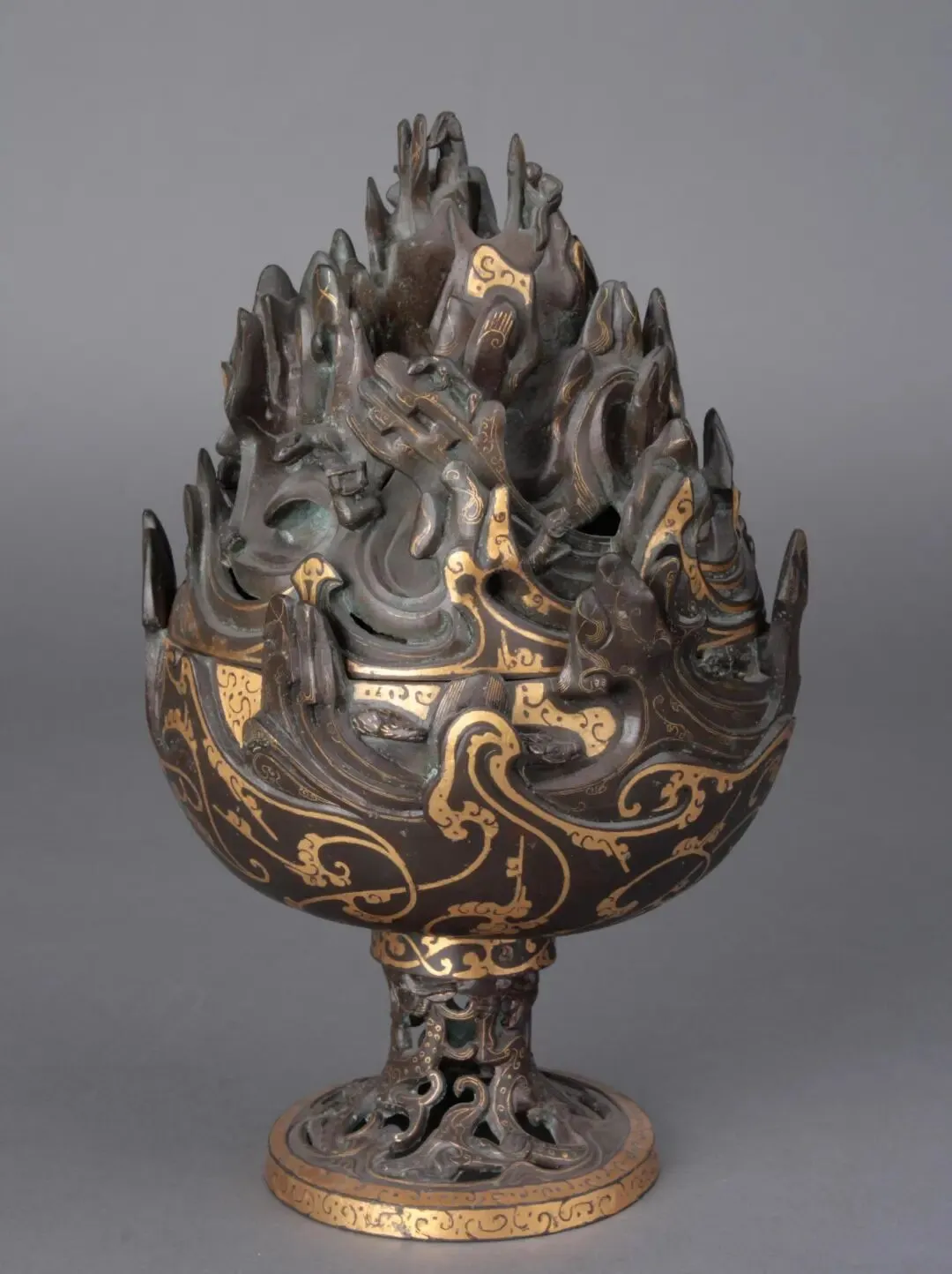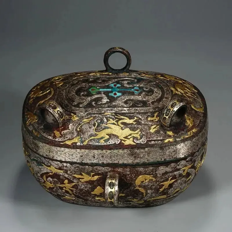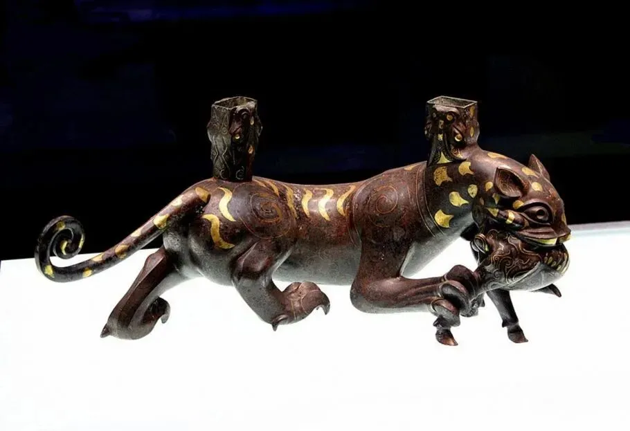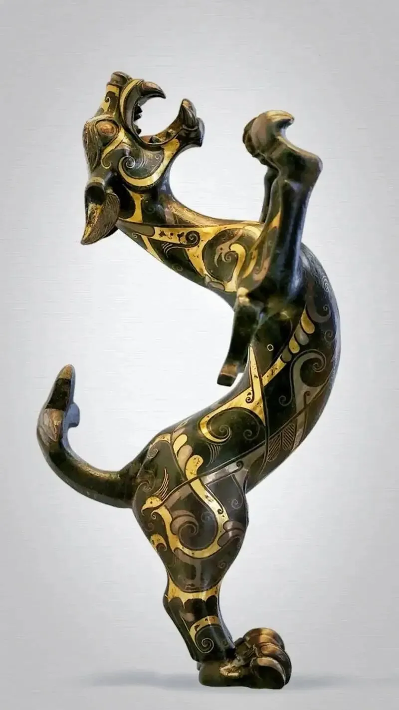 金银错的工艺特点与文化价值体现在:极致精细,金银丝细如毫发,线条流畅婉转,体现青铜时代最高金属加工水平;华贵永恒,金银耐腐蚀,千年后依然金光熠熠,象征王权、财富、永生;艺术融合,铸造、雕刻、镶嵌、抛光多工序合一,是技术与艺术的完美结晶。