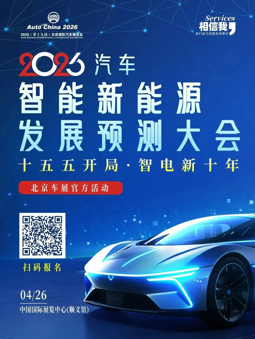 “2026汽车智能新能源发展预测大会”将于4月26日在北京·中国国际展览中心(顺义馆)W1馆举办。
