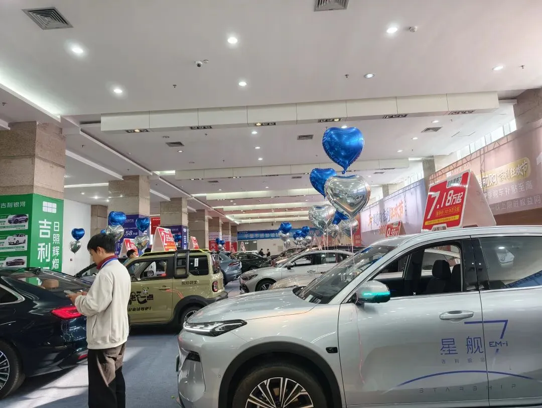 第二反应是,这么便宜我也买不起啊。新车买了没几年,同款车已经便宜了许多,卖二手车更是大幅降价,现在置换车感觉挺不划算。吉利好几个展位,可以看到国产车配置很高,各种功能都有,样子也很好看,而且价格非常划算。这边又是一个吉利的展位,几乎各个品牌都有电车,不得不说,开电车真的太省钱了。就像那个段子说的:以前看见开电车的,哇,太有钱了!现在看见开油车的,哇,太有钱了!会展中心入口,奔驰E,31万起,没买过奔驰,不过看起来还是比较便宜的样子,虽然也买不起。室内的车感觉档次高了不少。基本都在二三十万,,三四十万,看起来比较豪华,灯光打在车身上,泛着华丽的光。红旗国产车,这颜色和外形看起来也非常时尚。希望国产车越来越好…据说这车虽然价格便宜,但是搭载了价值好几万块钱的智驾,如今海鸥海豹在大街上开的非常多。又是吉利的展厅,话说这个白色蓝色心形气球还挺出片的。热热闹闹的样子,人还挺多的,不过应该也有一些像我一样来闲逛的。房价卷,汽车价格也很卷,现在六七万就能买辆挺不错的车了。看到了小琪。这个外形越来约好看了,而且价格更便宜了。这车的体验感很好,全车按摩、新风、座椅加热座椅通风。除了油耗有点高,但是现在出来混电的了,适合多娃家庭,不错。以前10万以内的车感觉不那么好选,现在10万以内的车,到处都是,外形好看,配置也高。小QQ,浅紫色的颜色很淡雅,电车,4万块钱开回家。