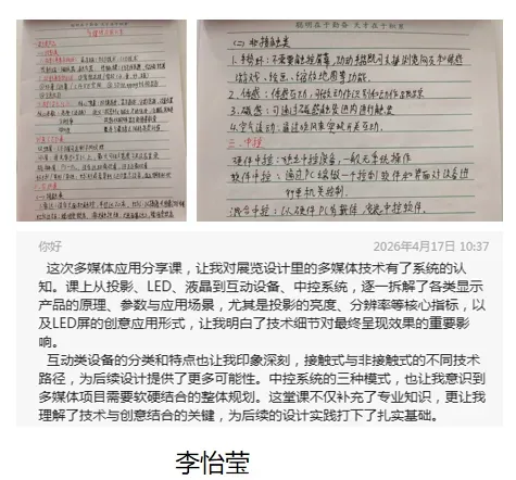 以技术赋能创意,以专业夯实根基。此次课程不仅是创新设计产业学院深耕专业教学、对接行业需求的生动实践,更为同学们搭建了理论与实践衔接的桥梁。愿同学们带着课堂所学,在阶段项目实践中锤炼专业能力,在科技与创意的碰撞中,探索展陈行业的无限可能,让每一份创意都能凭借扎实的技术,落地成有温度、有力量的优质作品。