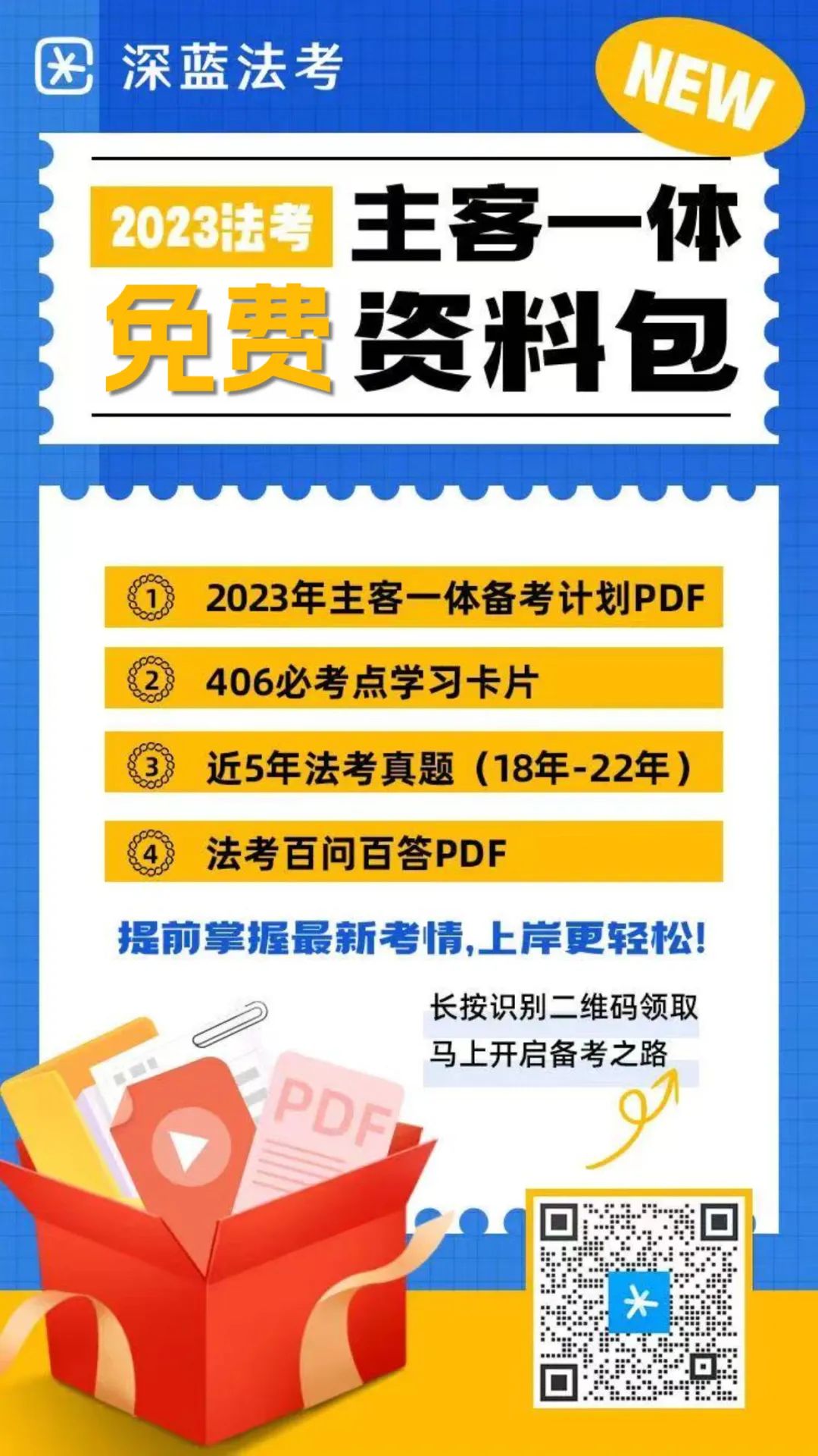 另外,小蓝这里也准备了一份备战23年法考全科资料,其中有2023年主客一体备考计划PDF、406必考点学习卡片、近5年法考真题和法考百问百答PDF,还可以免费咨询法考相关最新政策,有需要的小伙伴赶紧扫码吧?