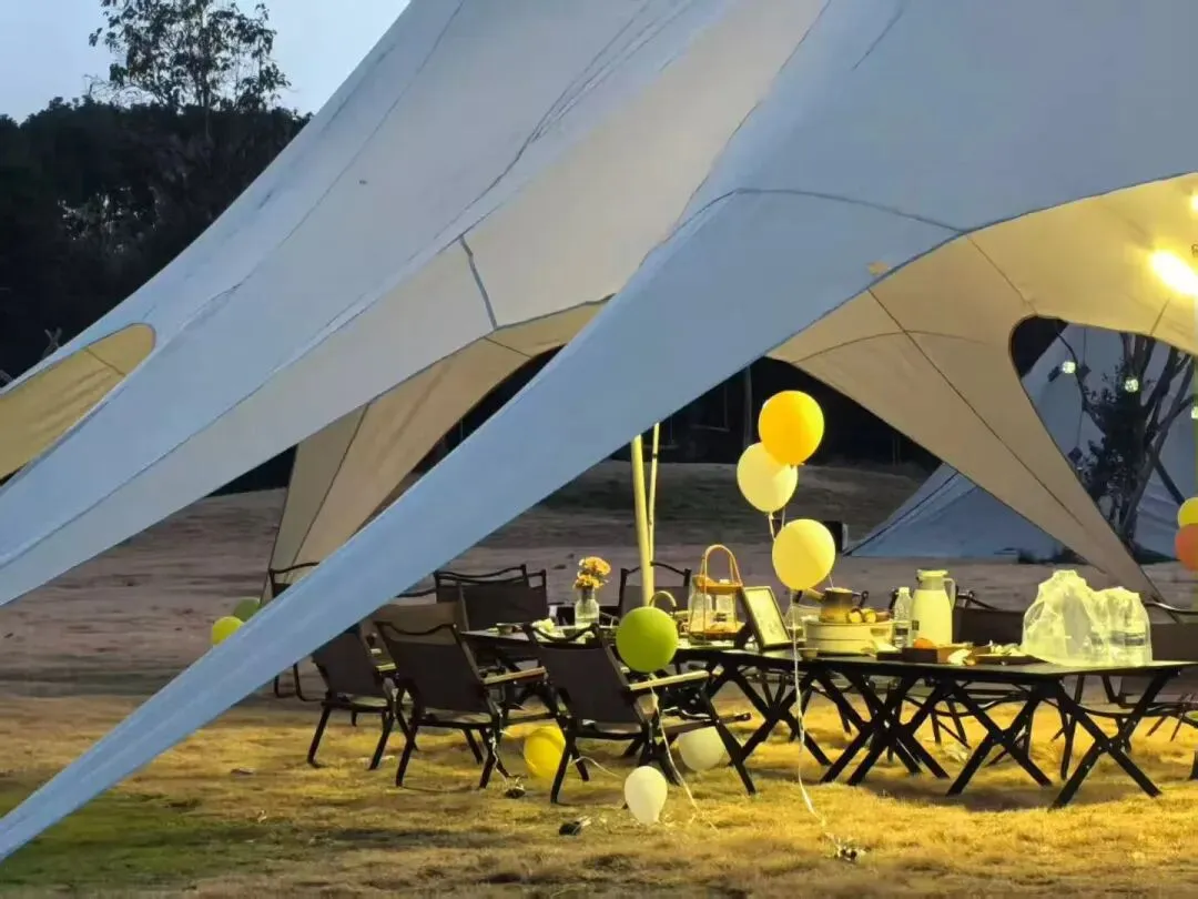 春日暖阳斜照,马蹄踏过松软泥土的声音,混合着远处传来的鸟鸣,构成城市里永远听不到的白噪音。教练团队全程前后守护,确保每一位客户的安全与体验感。第三幕|野奢:天幕之下,圈层共鸣自然发生