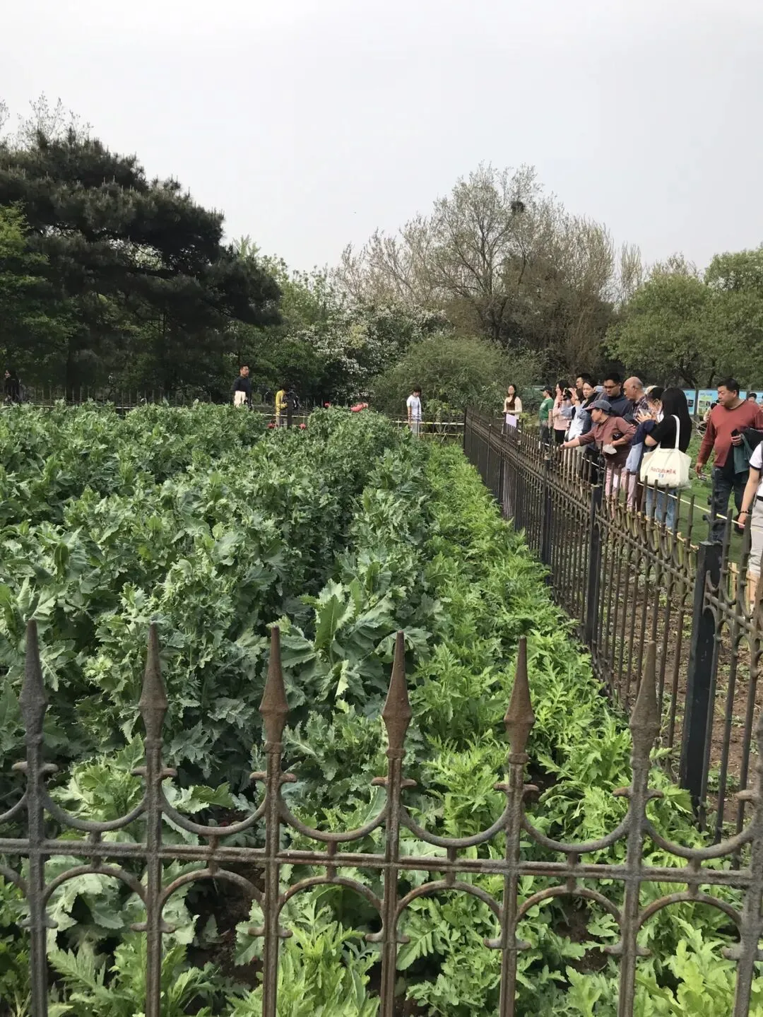 “慕名”而来的人络绎不绝。可能大家都跟我一样,因为罂粟刚种上没有开花有点遗憾。绿油油的罂粟都长出了花苞,也许再过一个星期,就会呈现鲜花盛开的场面了。对罂粟感兴趣的朋友,一个月之内都是来看展览的黄金时间。不过,我星期六来的教训是,周末两天的香山周边堵车严重,停车一位难求。所以建议自驾的朋友尽量避开周末两天来植物园。