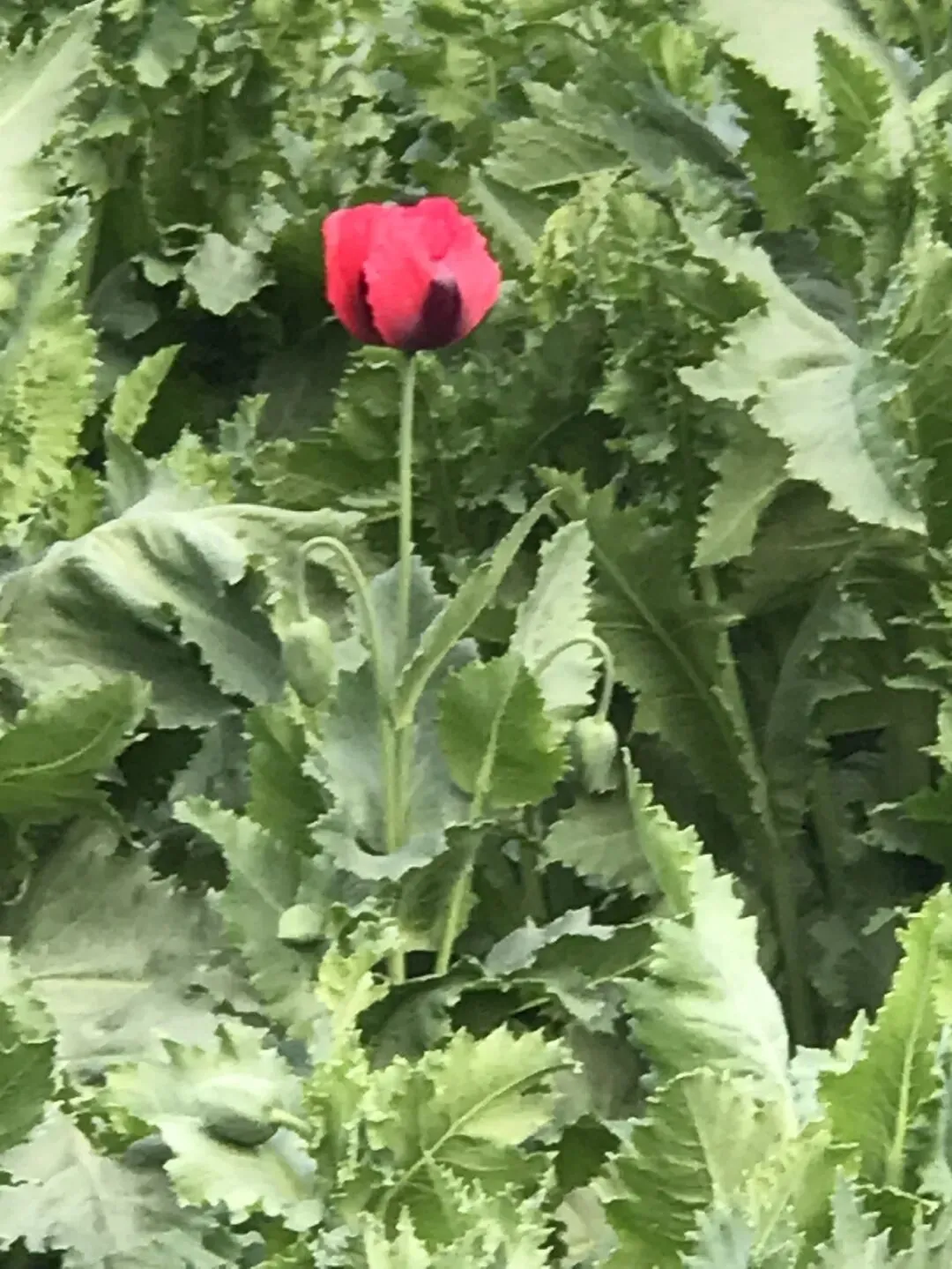 也是因为刚种上,罂粟几乎没有开花,缺少了它那标志性的花朵。从照片可以看出,罂粟现在已经长到与观众一样高了。