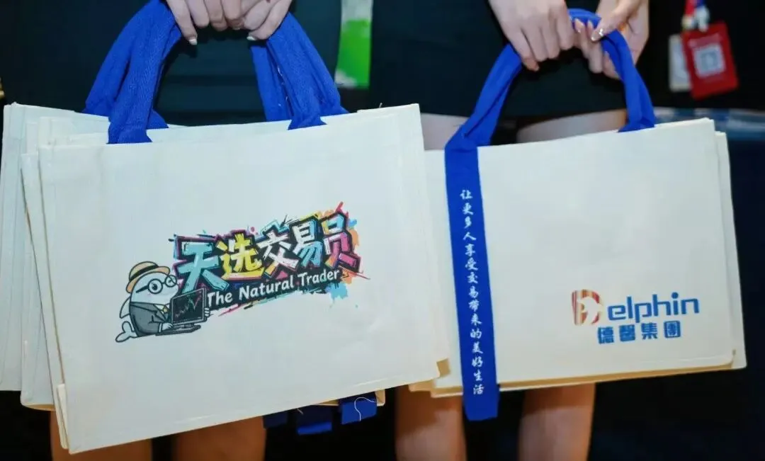 展位上,我们准备了丰富的品牌资料与定制周边,从集团业务手册到印有「天选交易员」IP的帆布袋,每一份物料都传递着德馨的品牌温度。