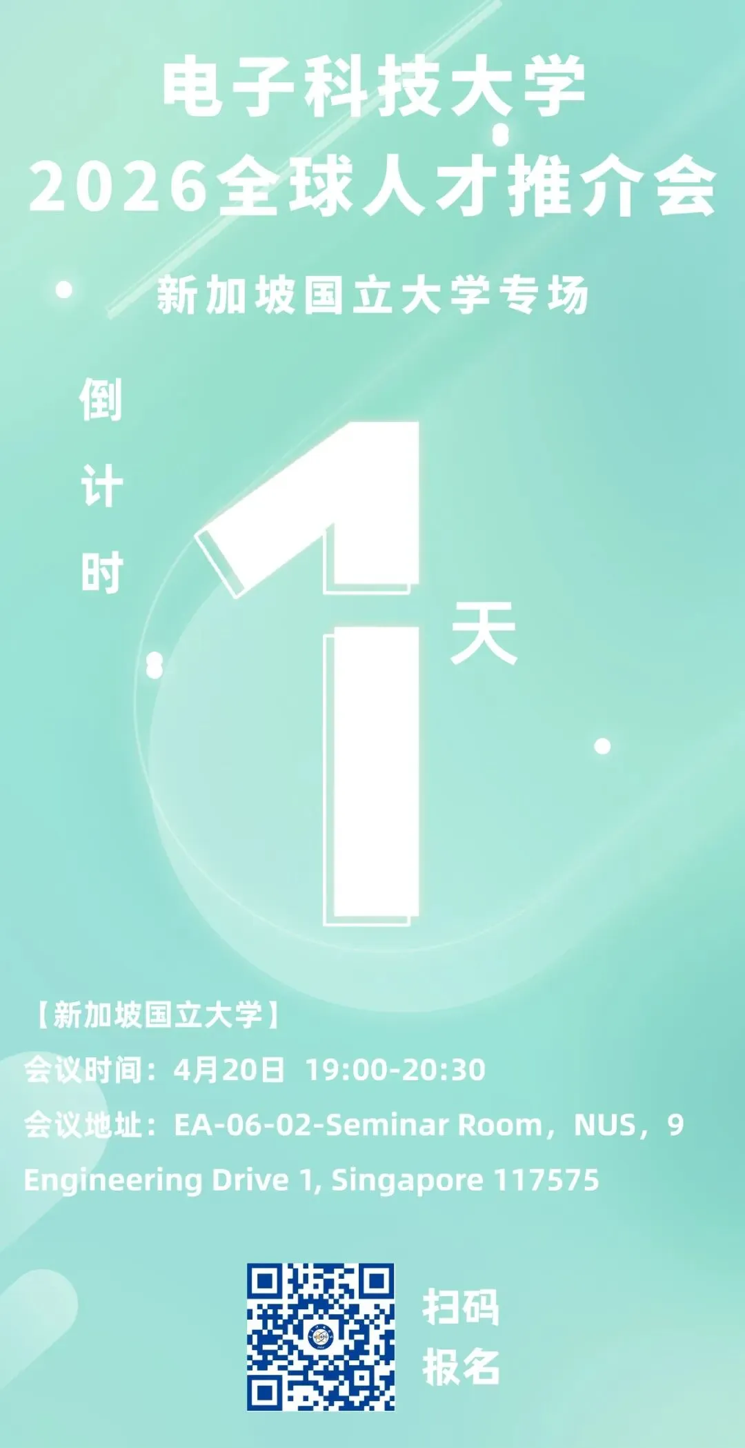 倒计时1天!电子科技大学全球人才推介会-NUS专场,诚邀报名参会!
