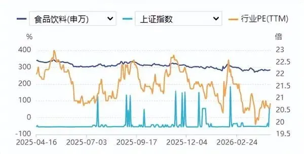2026年4月13日-2026年4月17日,沪深300指数上涨1.99%,申万食品饮料指数下跌1.38%。前五大上涨个股分别为:均瑶健康、*ST椰岛、朱老六、安德利、龙大美食。