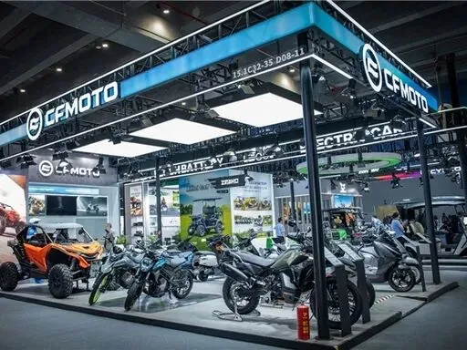 春风动力 (CFMOTO):在15.1馆展出全品类产品,包括ADV标杆车型 1000MT-X、仿赛 675SR-R、复古踏板 150AURA 等,展现“全球化、智能化、电动化”战略。
