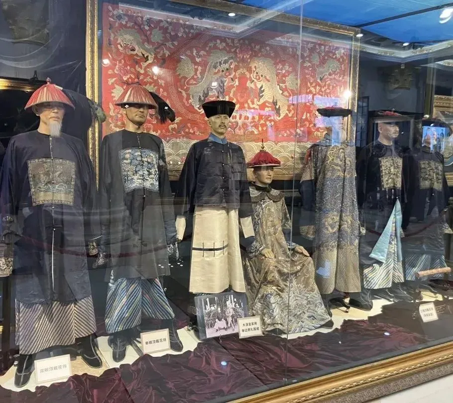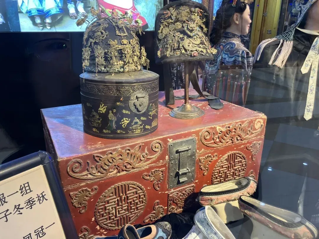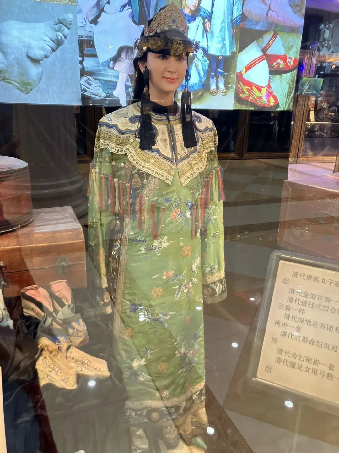 ⬇️女装旁边是首饰,点翠首饰占多数。点翠就是用翠鸟的羽毛制作,且只取背上中间窄窄的一小片。小时候在课文里学过翠鸟,没想到漂亮的小鸟有这么悲催的命运。其实我们的动物保护意识在近二三十年才发展起来。87版课文《翠鸟》有这样的情节,不是不能逮,而是不好逮?