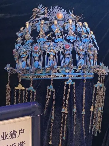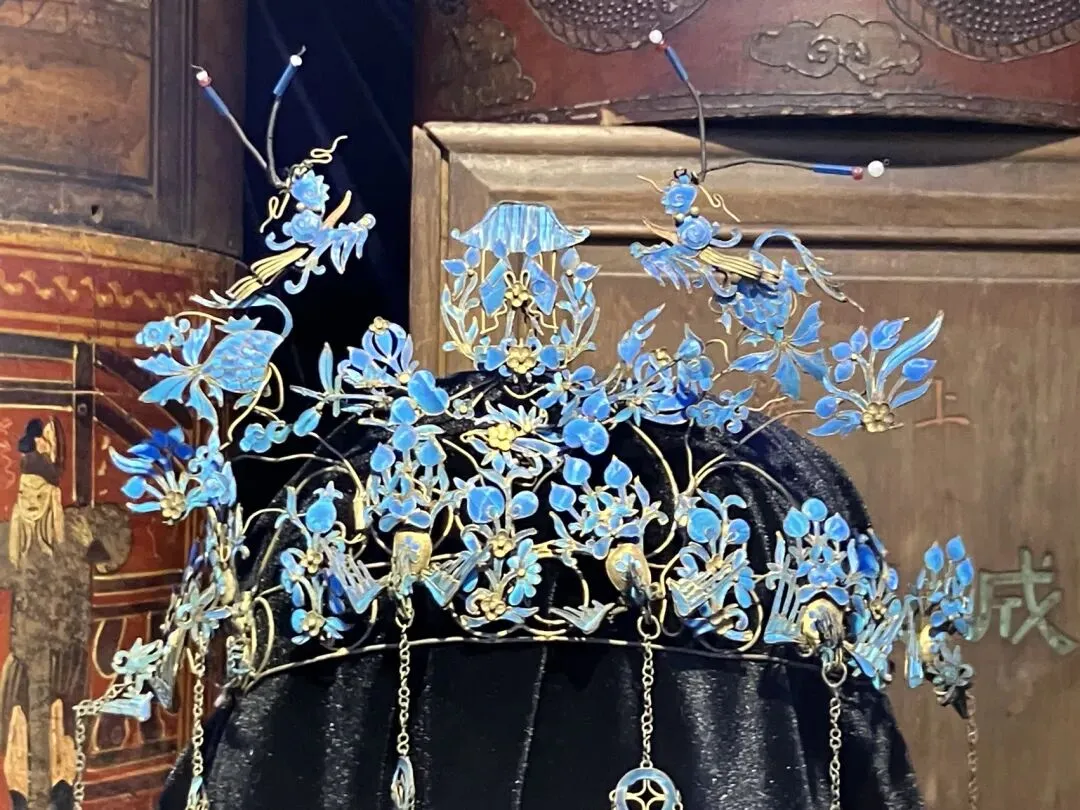 ⬇️看到这个头饰想起一个词:高门大户。普通百姓家房门低矮,打扮成这样都进不去门?