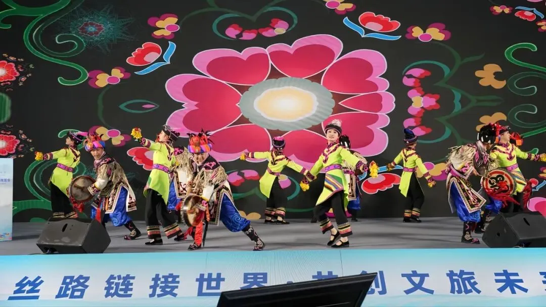 活动现场,凤县羌文化特色舞蹈《火红的萨朗》精彩上演,欢快的节奏与绚丽的舞姿将现场气氛推向高潮,生动展现七彩凤县古羌文化的独特魅力。