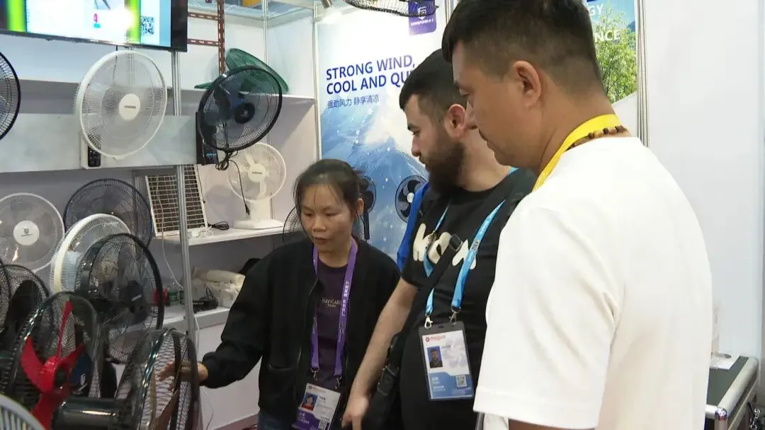 我们这次主要展示直流变频风扇和交流风扇,还有我们的充电风扇。我们的产品具有静音、风力大、智能节能等特点,能够满足不同客户群体的需求。