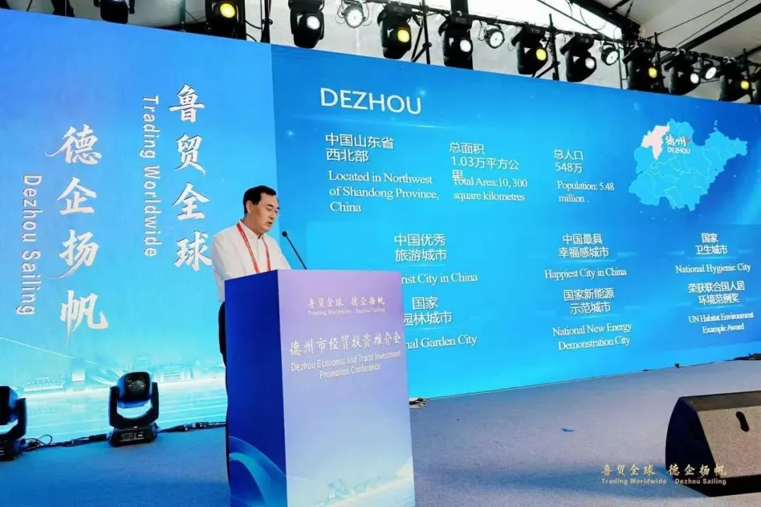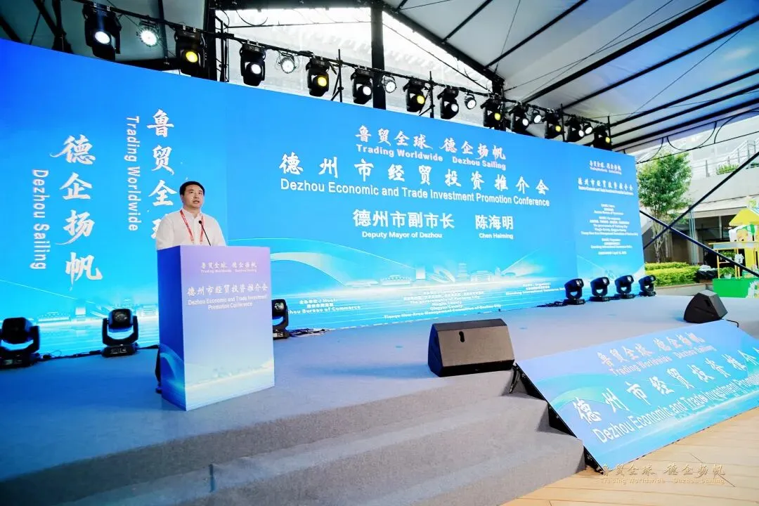 4月18日,“鲁贸全球 德企扬帆”德州市经贸投资推介会在广州举行。德州市副市长陈海明出席活动并致辞。