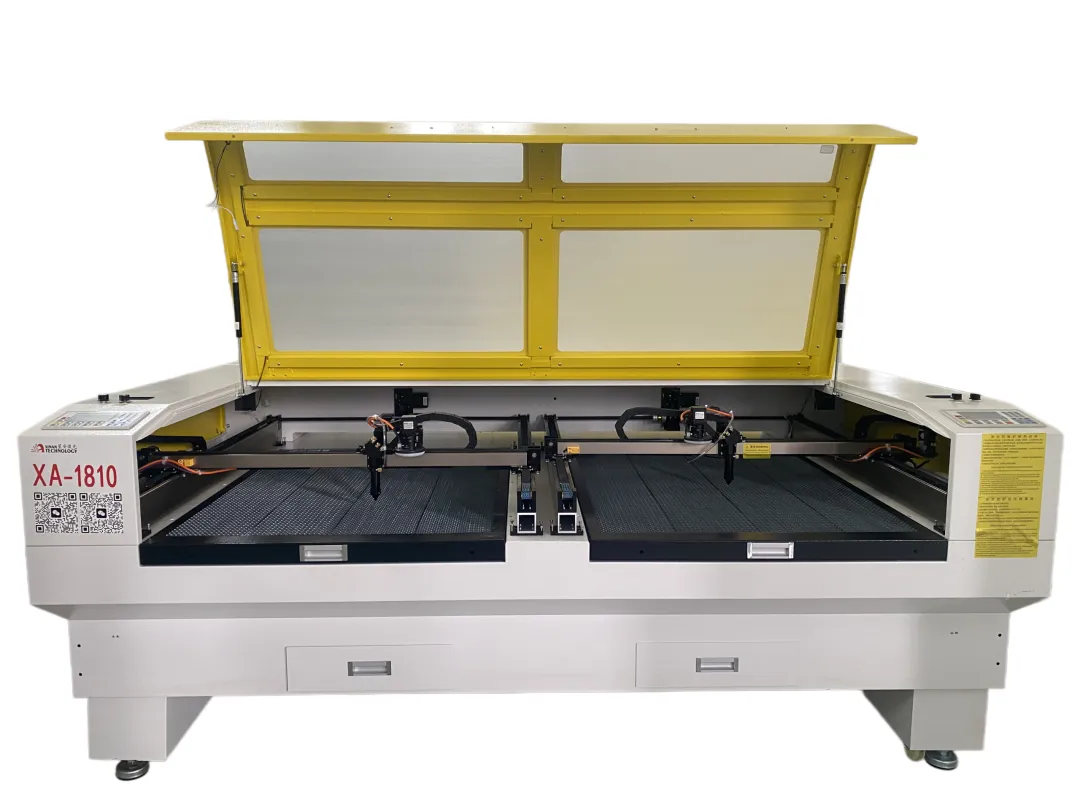 1.XA-双工位高性能CCD视觉切割机是我司自主研发的先进激光切割机,多加工平台,一机多用,可以满足多种非金属材料的切割加工要求设备搭载独立双工位布局,采用优化的多主轴同步控制技术,使得两个工位可独立运行、互不干涉,实现一台机同时进行不同的切割任务功能,大幅提升生产效率与加工灵活性;