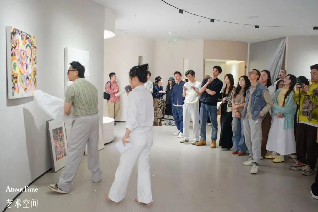 ▲ 艺术家揭开展览作品(图片源自现场)