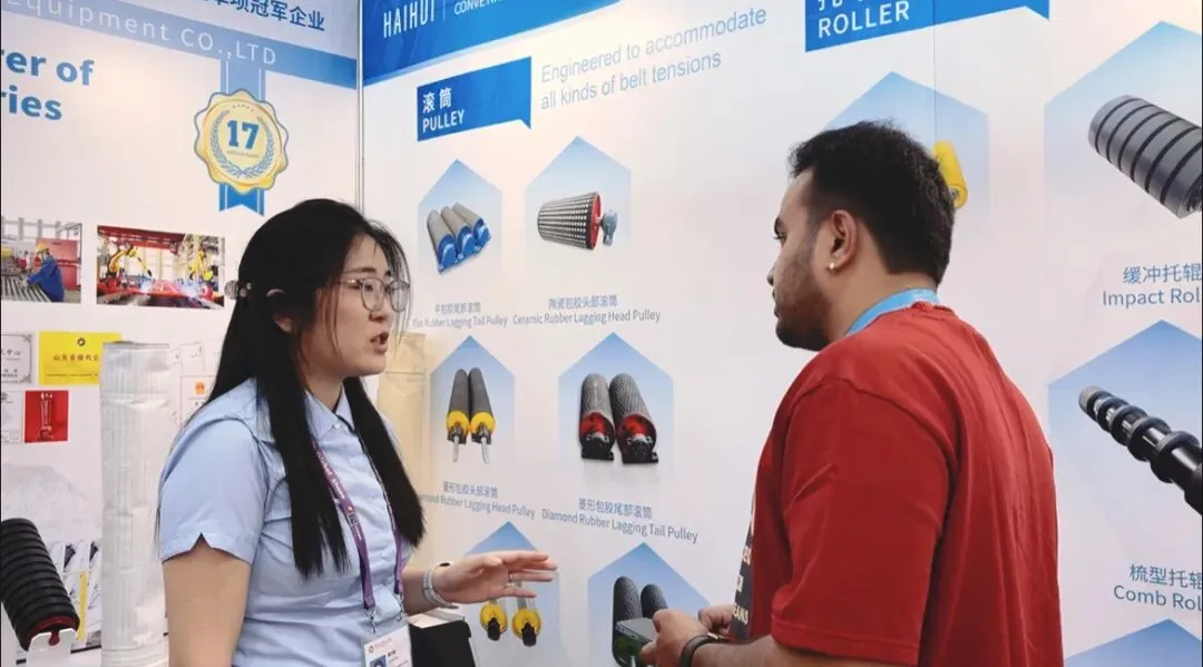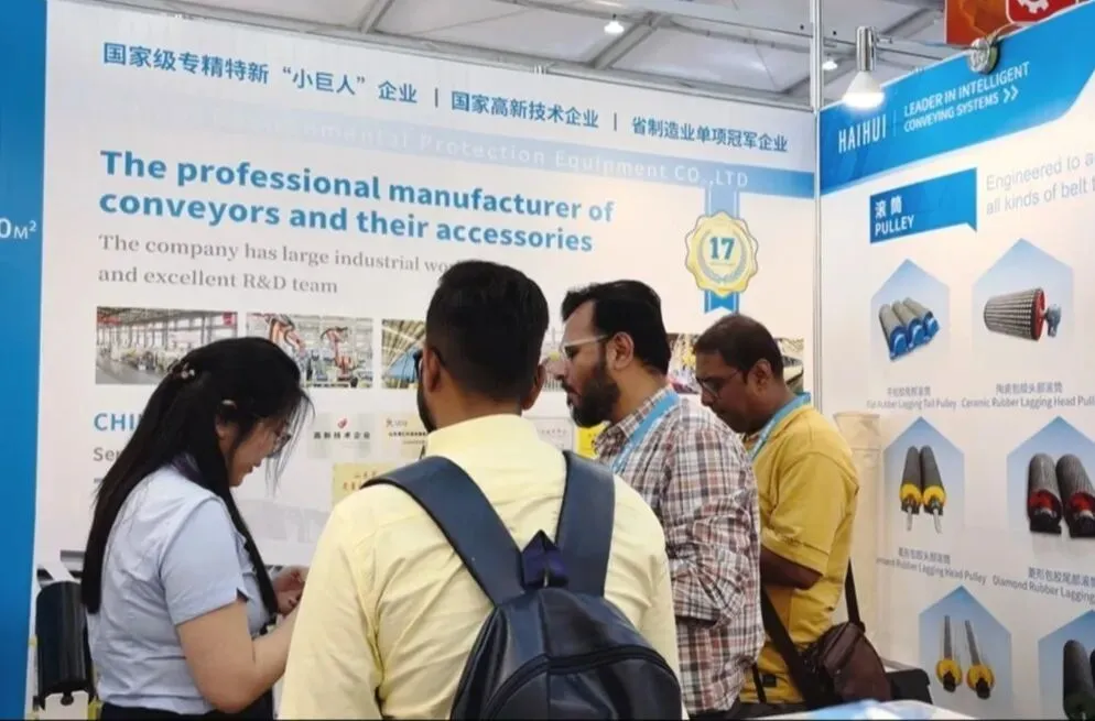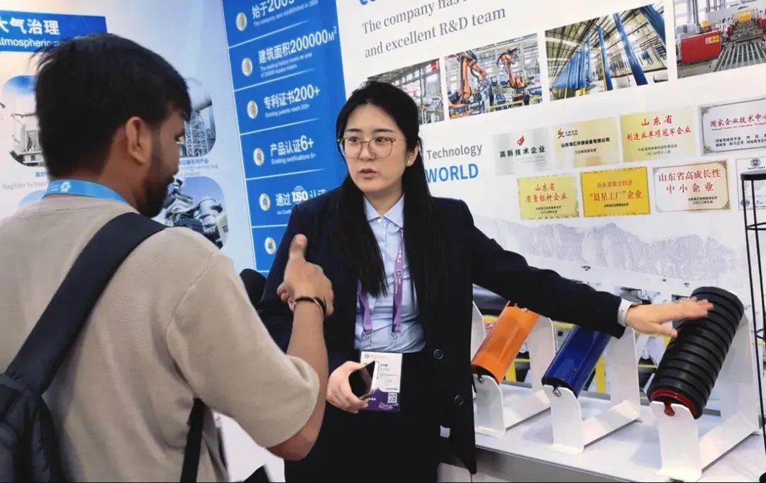 本届广交会公司以“绿色智造・全球共享”为核心主题,深度契合本届广交会“新、绿、智”发展趋势,借助实物展示、场景模拟、动态演示等多元方式,立体化呈现智能输送、环保除尘、高精度滚筒托辊等核心产品矩阵。在展区内,智能输送设备的上下游产品陈列、除尘设备的实际运行场景动态演示,直观诠释了公司全周期服务能力,凸显了公司在工业环保装备领域的深厚研发实力。