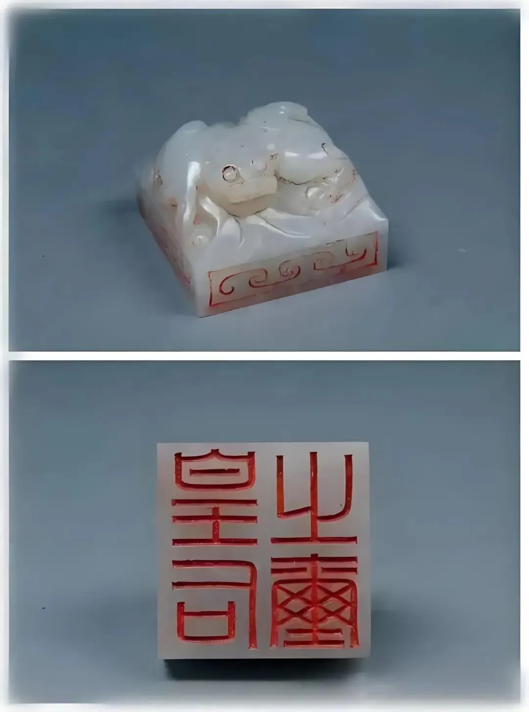 据《汉旧仪》记载:“皇后玉玺,文与帝同”,“皇后之玺,金螭虎钮”。这块印的形制与印文和汉制相合,再加上出土的地点距离汉高祖和吕后合葬的长陵不远,所以专家推测这是吕后吕雉之物,是汉代皇后玉玺的唯一实物资料,弥足珍贵。现收藏于陕西历史博物馆(原陕西省博物馆,现为陕西历史博物馆),是第三批永久禁止出国展览的文物。