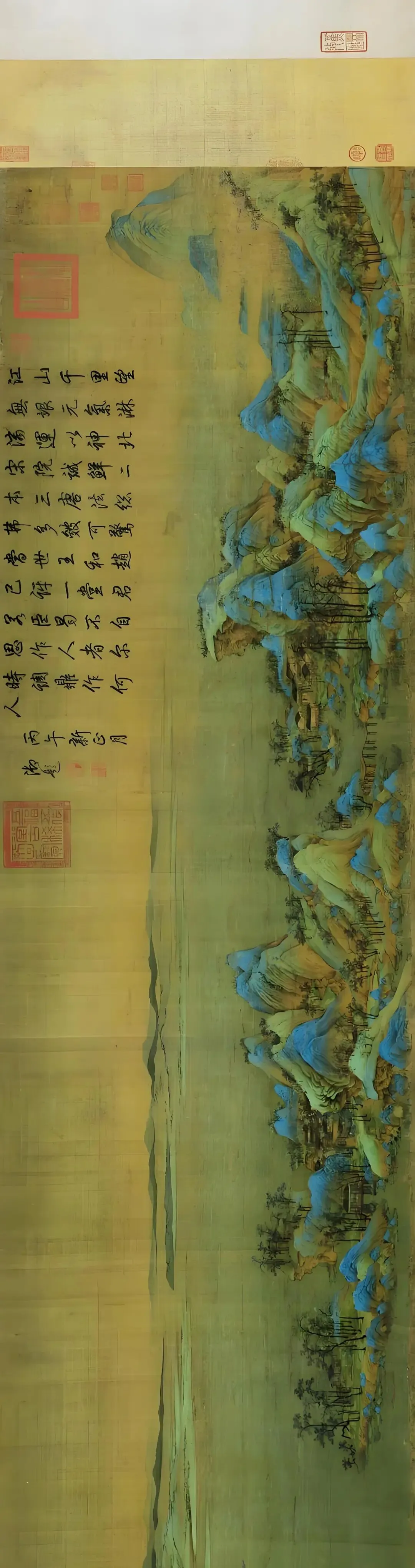 张大千曾经临摹过一幅千里江山图,这幅临摹的千里江山图就卖出了3.7亿的天价。据考证,千里江山图主要的取景地是庐山和鄱阳湖。作者王希孟是宋徽宗赵佶的亲传弟子,在得到赵佶亲传指点笔墨技法之后,1113年,年仅18岁的王希孟用了半年时间完成了这幅长达12米的千里江山图画卷。现收藏于北京故宫博物院。