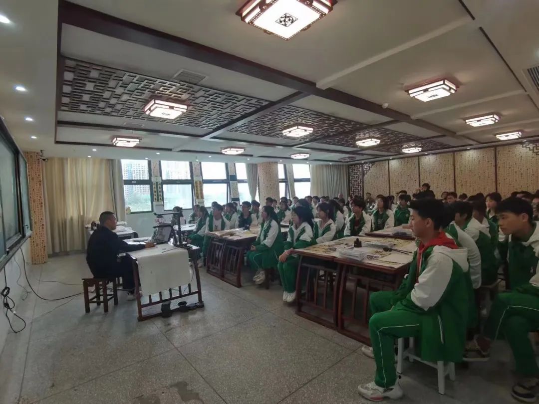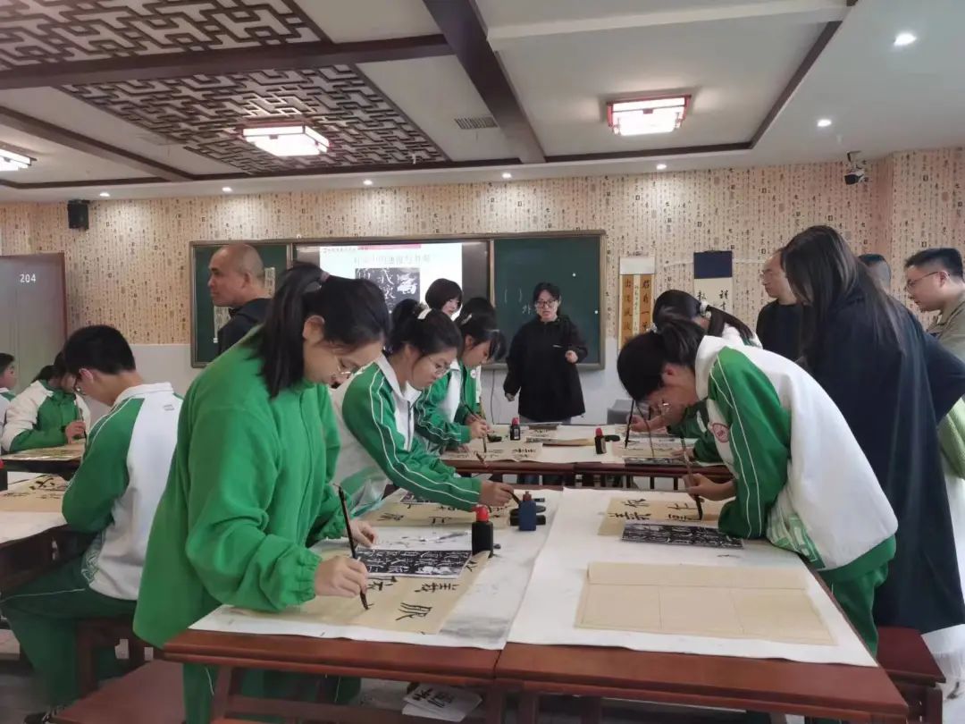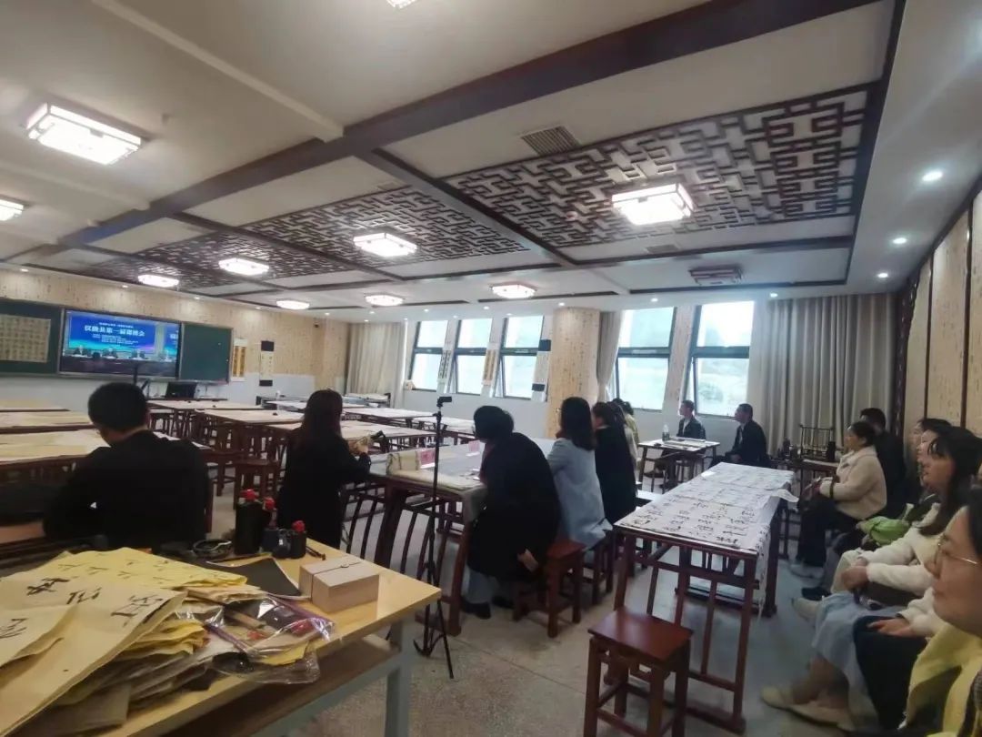 上午8:20—8:50,书法、篆刻项目工作室全体成员以及来自全县各个学校的书法爱好教师共同收看了“课博会”开幕式。