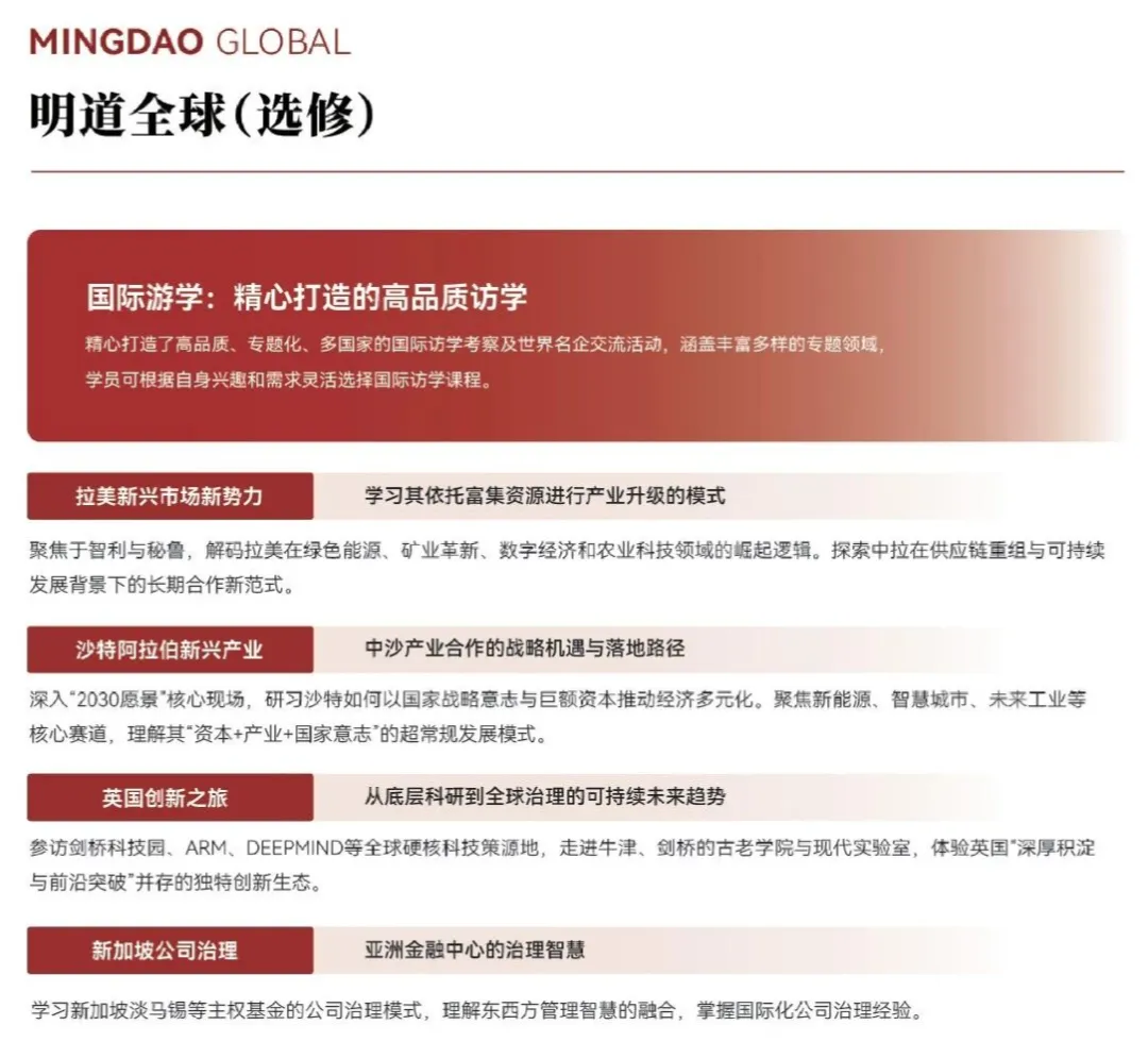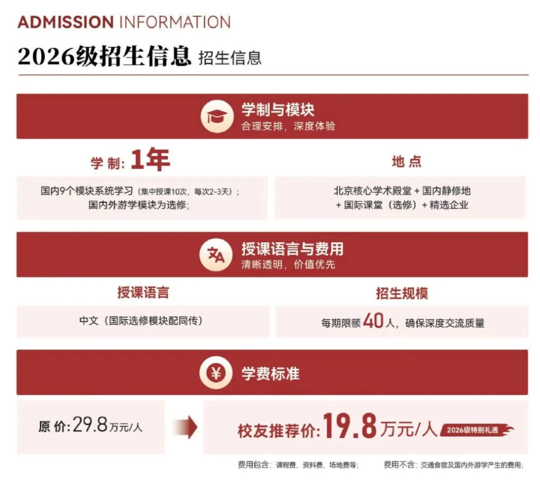 上课地点:北京核心学术殿堂+国内静修地+国际课堂(选修)+精选企业