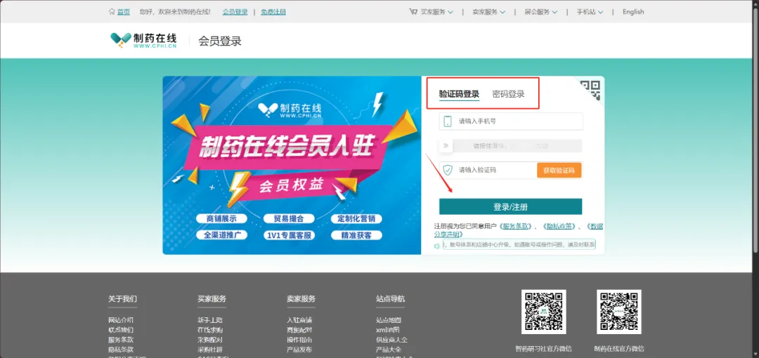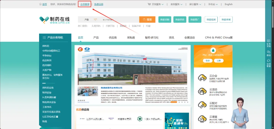 登录【制药在线官网】(www.cphi.cn),点击会员登录