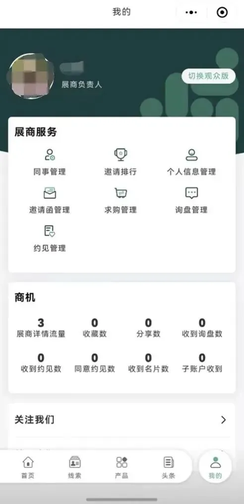 5.现场专属私密会议室将根据到场观众排名先后选择使用日期,小程序展会首页推荐展商位将根据到场观众排名排序展示。